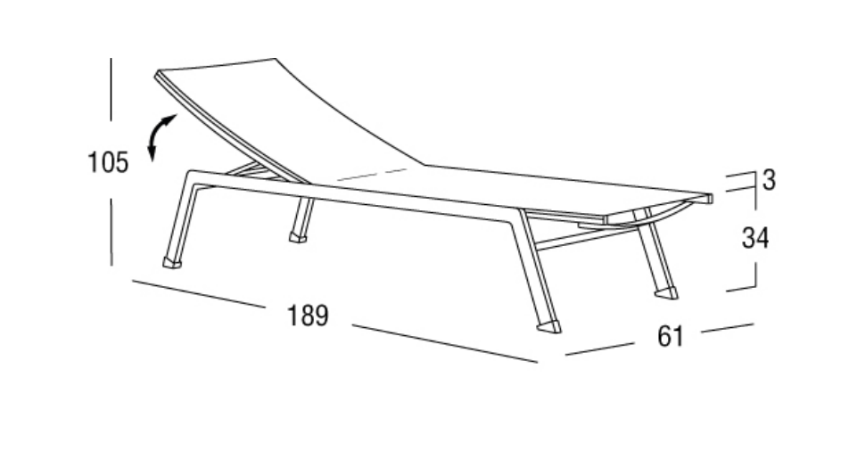 description | Sunbed, aluminum frame powder coated with Batyline Imo |
