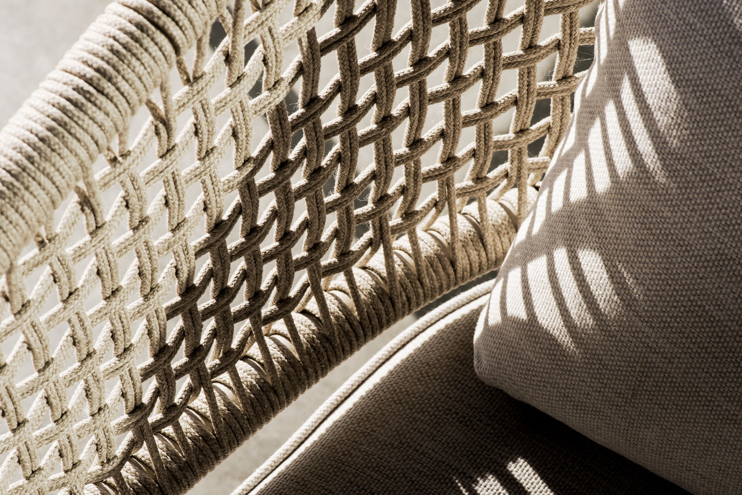 description | appear effortless. The frame of the chair is made of profiles in powdercoated stainless steel that are bent in one continuous line. The corners are straight, yet the tubes keep a round form, which requires great mastery. The backrest is attached to the frame at only 2 points and appears to float unsuspended above the seat. The open weave refers to the ancient tradition of weaving and gives flexible support to the back. The seat is upholstered with a water-repellent cushion which can be easily removed. |