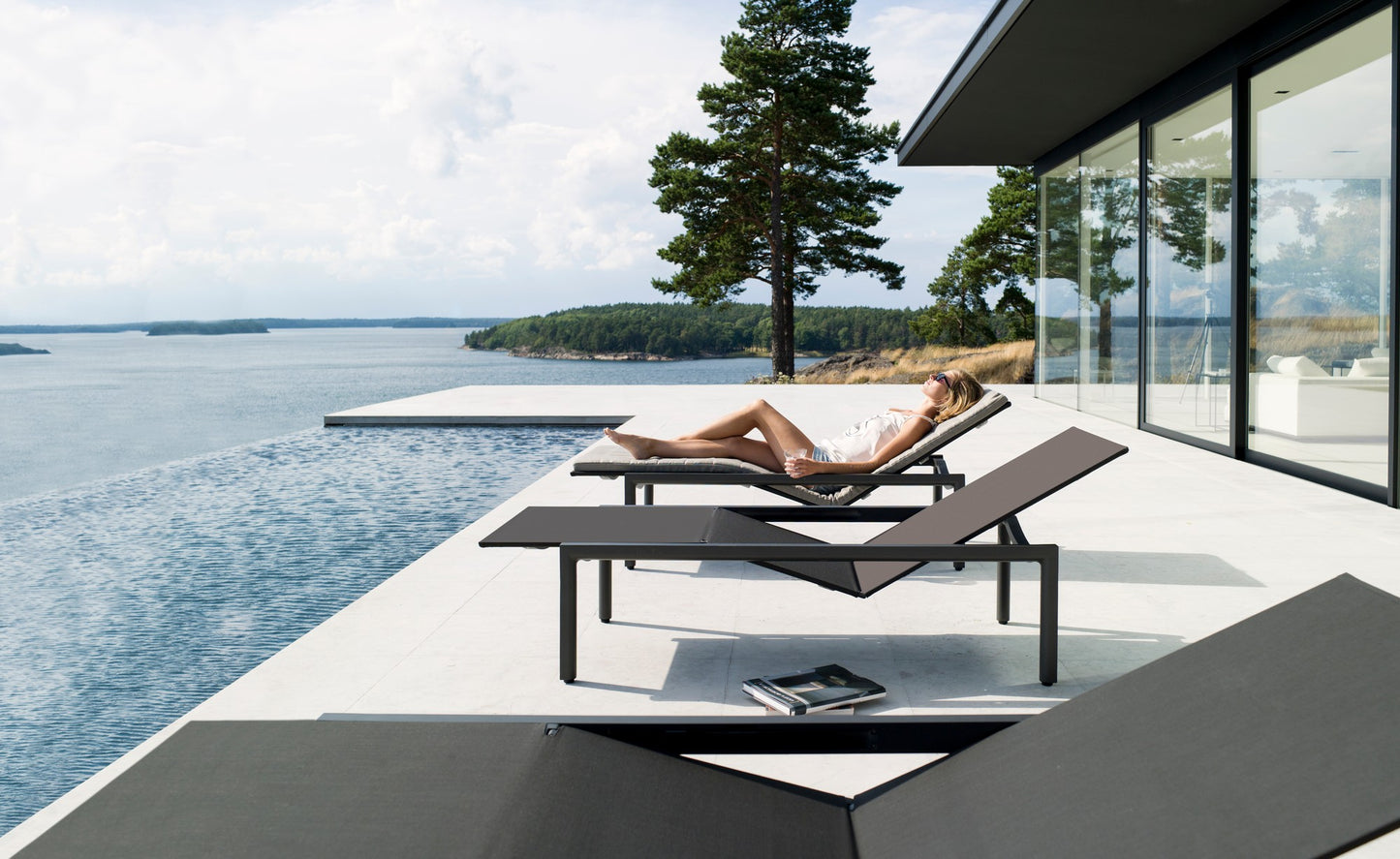 description | The Illum sun lounger has not only an adjustable backrest, also the seat lowers itself to offer unmatched comfort. The adjustment system, a newly developed pump system, is cleverly hidden. Enjoying the outdoor life has never been this simple and comfortable! The powdercoated aluminium frame is easy to maintain. The Batyline seat guarantees a lasting high tension, quick drying and an excellent resistance to UV rays and fungi. |