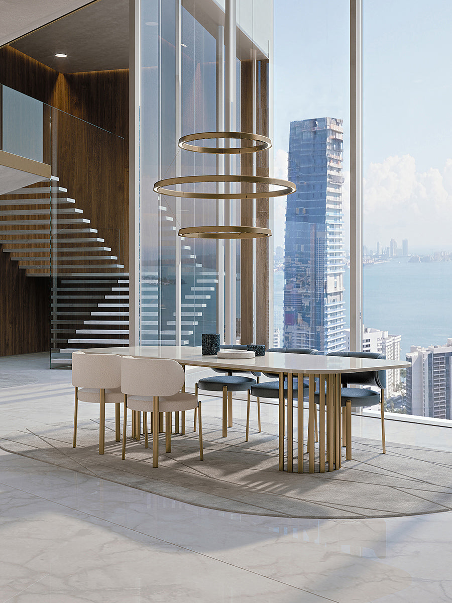 description | The Roma chairs with smooth or embroidered backs, upholstered in fabric or leather, express the reference to the round arch which inspires the entire collection, especially in the round shape. |