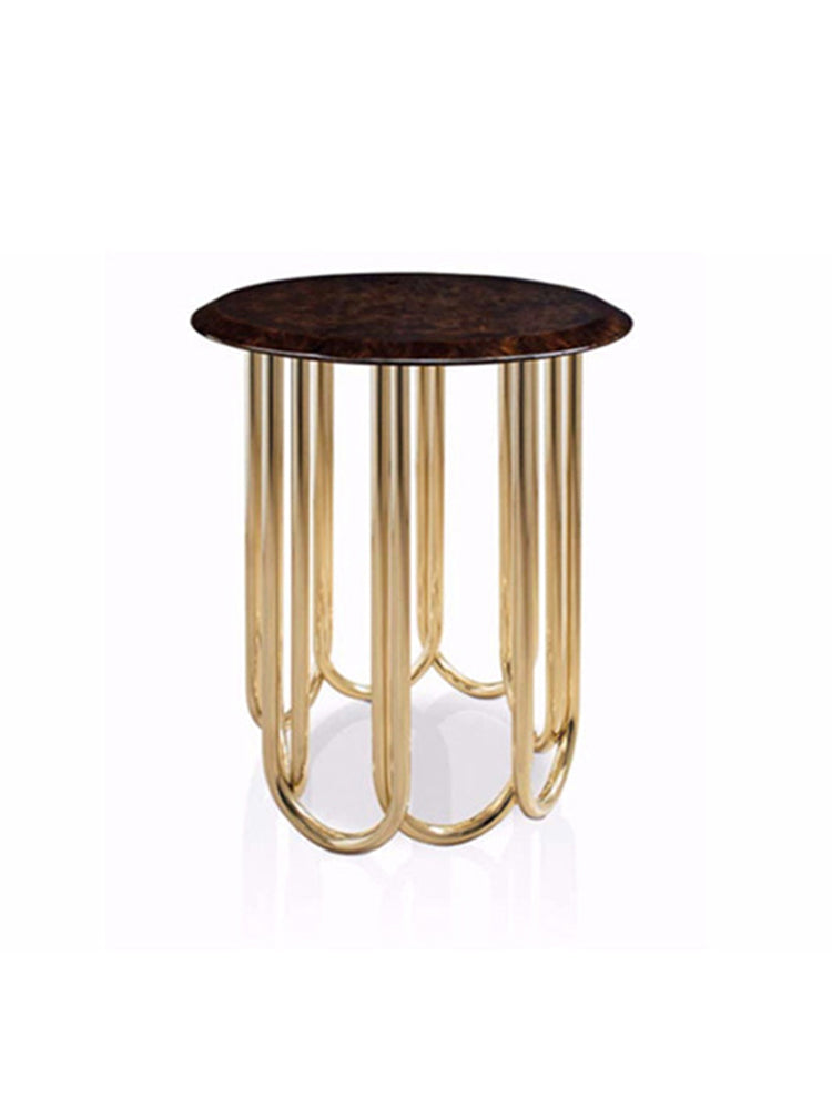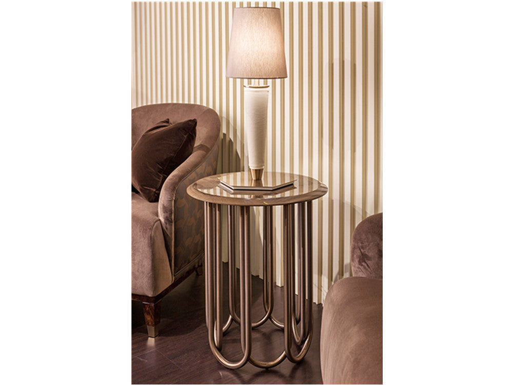 description | Side table from Audrey collection has a sophisticated design with original shape, its tubular legs in curved metal create a game of full and empty that supports a top that can be chosen between glossy lacquered wood or marble. The result is a unique design with unexpected shapes. |