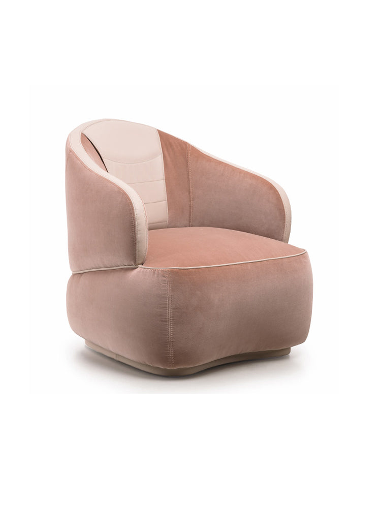 description | The armchair of Bloom collection has soft and graceful lines. The sinuous profile gives the feeling of comfort and balance. The armchairs are available in two versions, with leather headrests or with side buckles, with leather or fabric covers. |