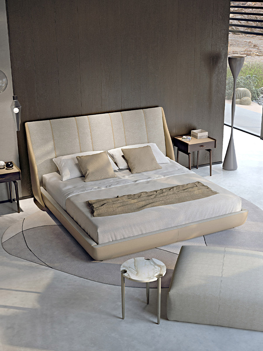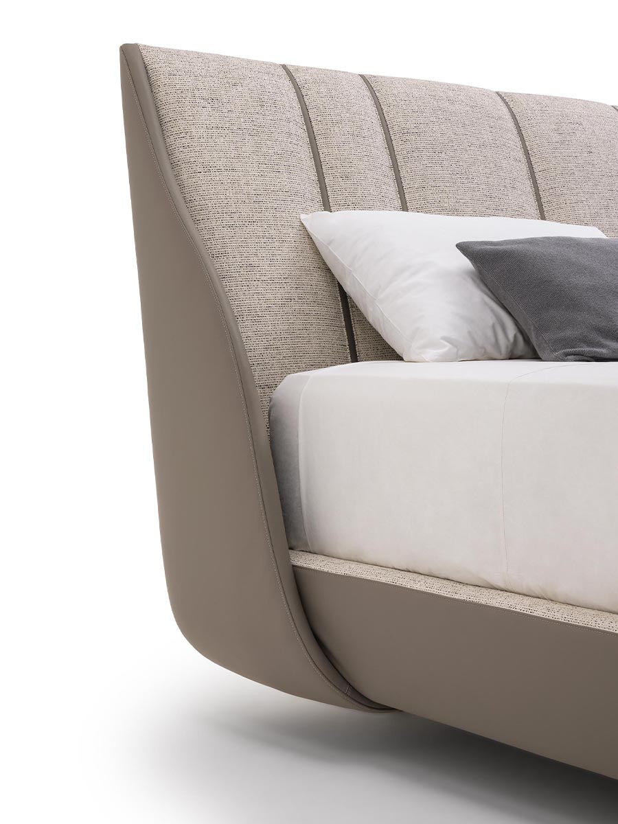 description | Th bed of the collection Blues is soft and cozy, fully padded and a pure symbol of comfort and well-being. The upholstery materials, leather and fabric, create an elegant contrasts. |