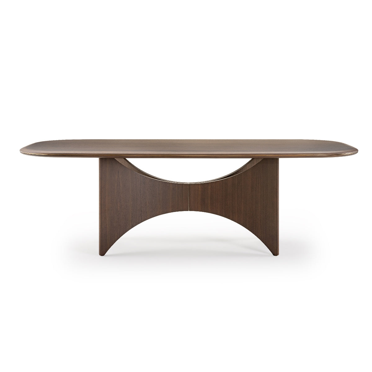description | The table of the Blues collection has a base that evokes wings, both aesthetic and functional, supporting the top, in an elegant game of lines. A metal detail makes the central meeting point sophisticated. The top is characterized by rounded corners and circular and light lines, as well as the profile, always rounded and enriched on the entire perimeter with the same metal detail of the base. The different varieties of materials and finishes of the top – in wood or marble – and of the base – in walnut or glossy lacquered wood – make the table a design element suitable for any interior. |