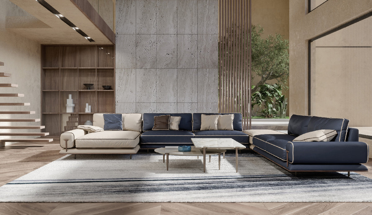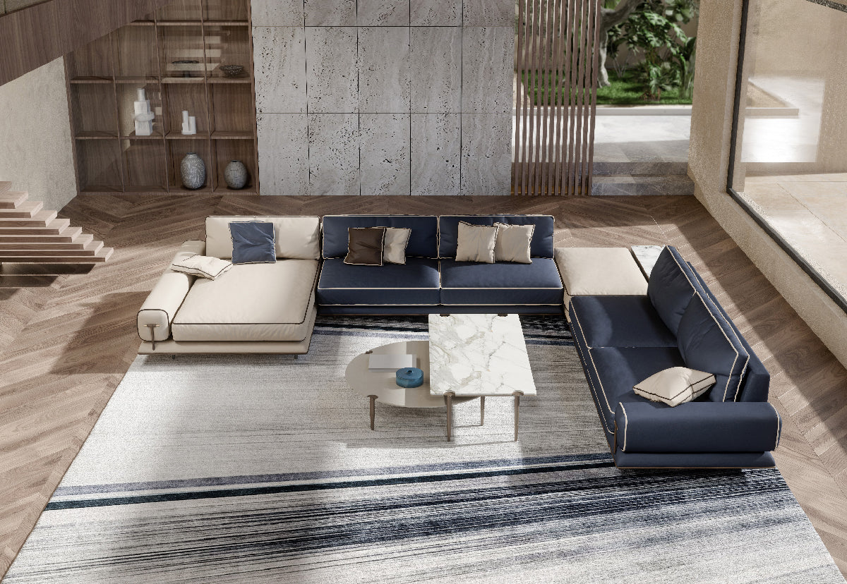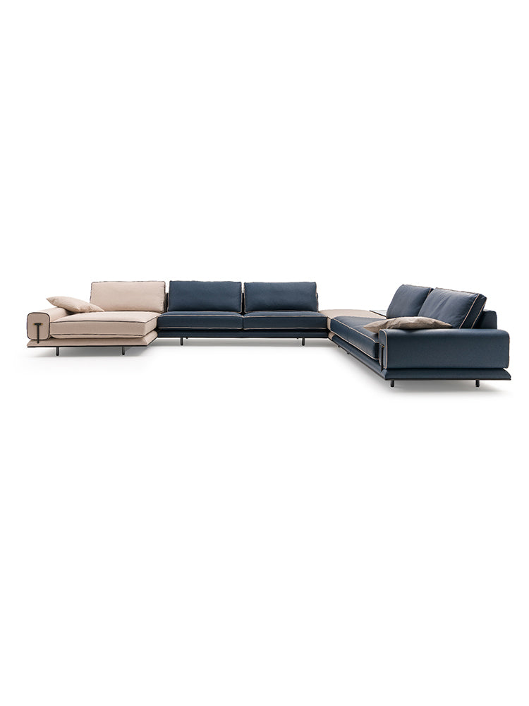 description | Blues modular sofa, thanks to an ample choice of modules, starting from the central ones up to the end pieces and the chaise longue, including the corner units and the poufs, the modular compositions are several and satisfy most requirements. Even as a 2 or 3-seater, the Blues sofa is outstanding for its minimalist design and at the same time for the richness of its details : the walnut wood base, linear and uniform is supported by tubular metal legs. |