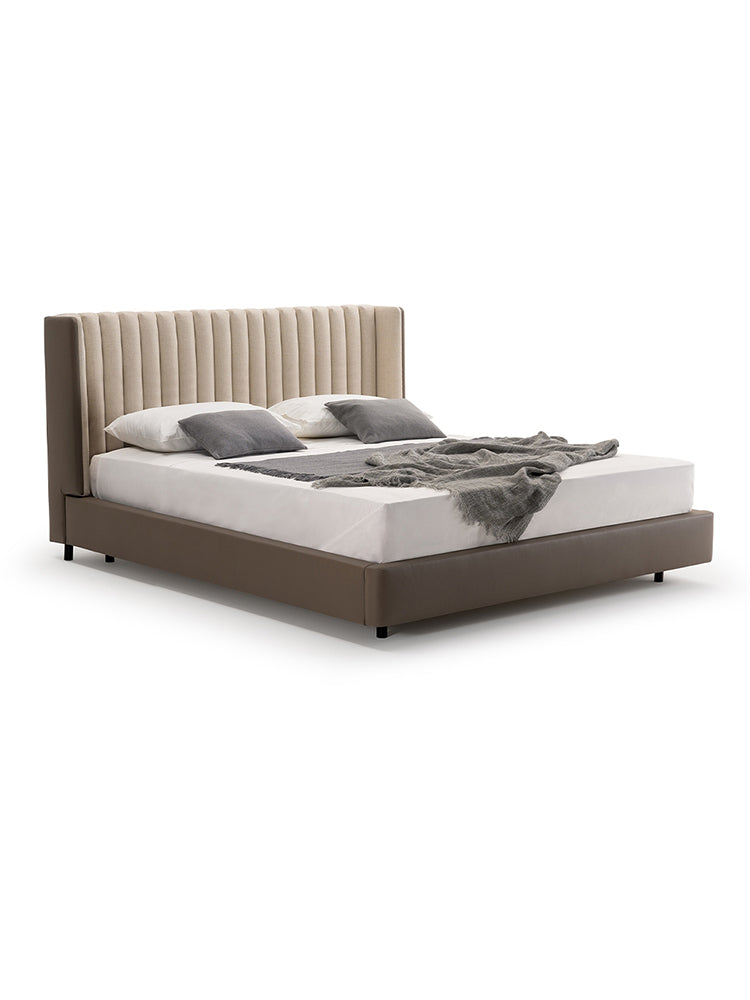 description | The Domus bed has contemporary proportions and light shapes. The design of the headboard, curved and enveloping, is characterized by original vertical seams that give it a unique appearance. The upholstery can be in leather, fabric or with both materials in combination. |