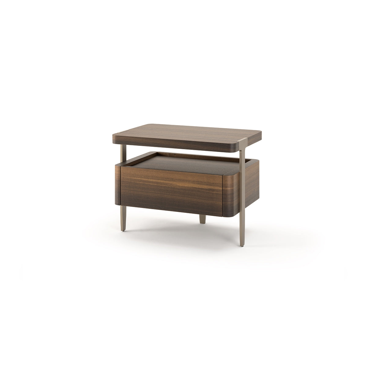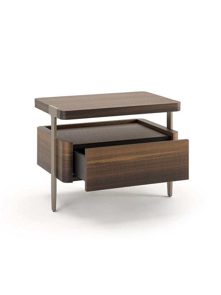 description | The Domus bedside table is in perfect balance between contemporaneity, the search for uniqueness and functionality. The Eucalyptus wood structure is supported by Matt Light Platinum metal legs. |