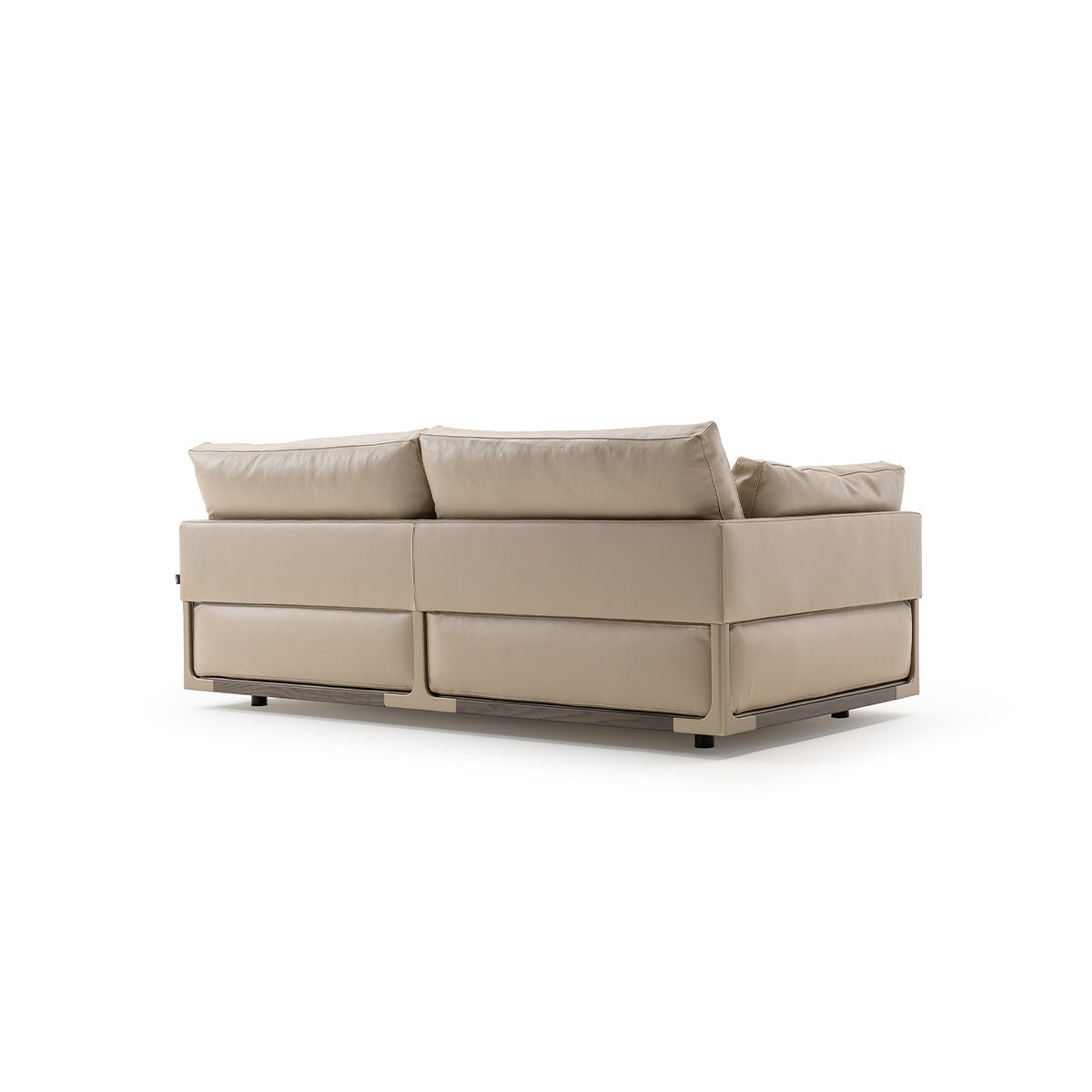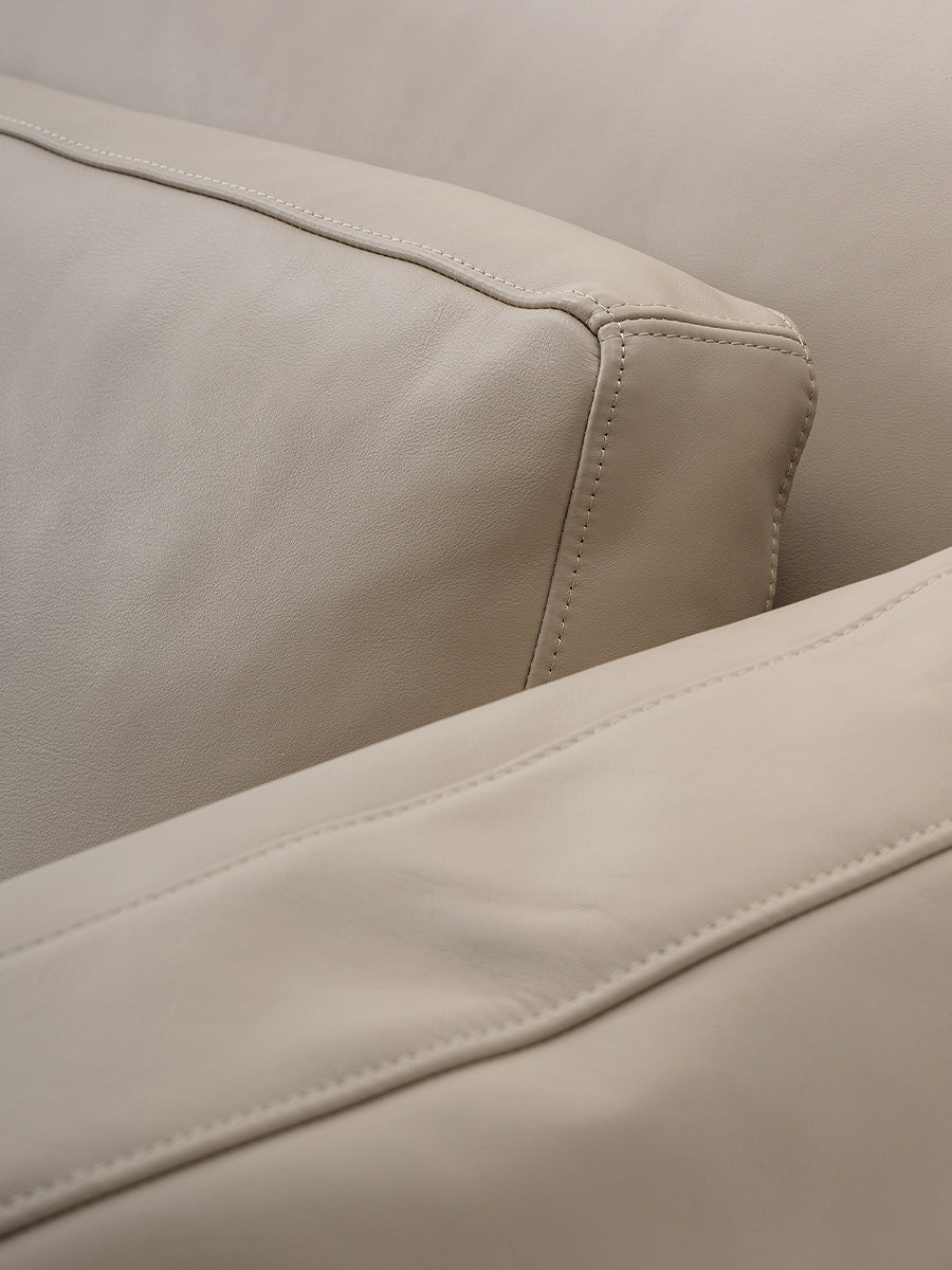 description | The fixed sofa of the Drum collection has an elegant design and a comfortable seat. The side armrests are available in woven leather in different colors. Matt Light Platinum metal details. |