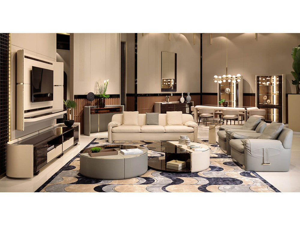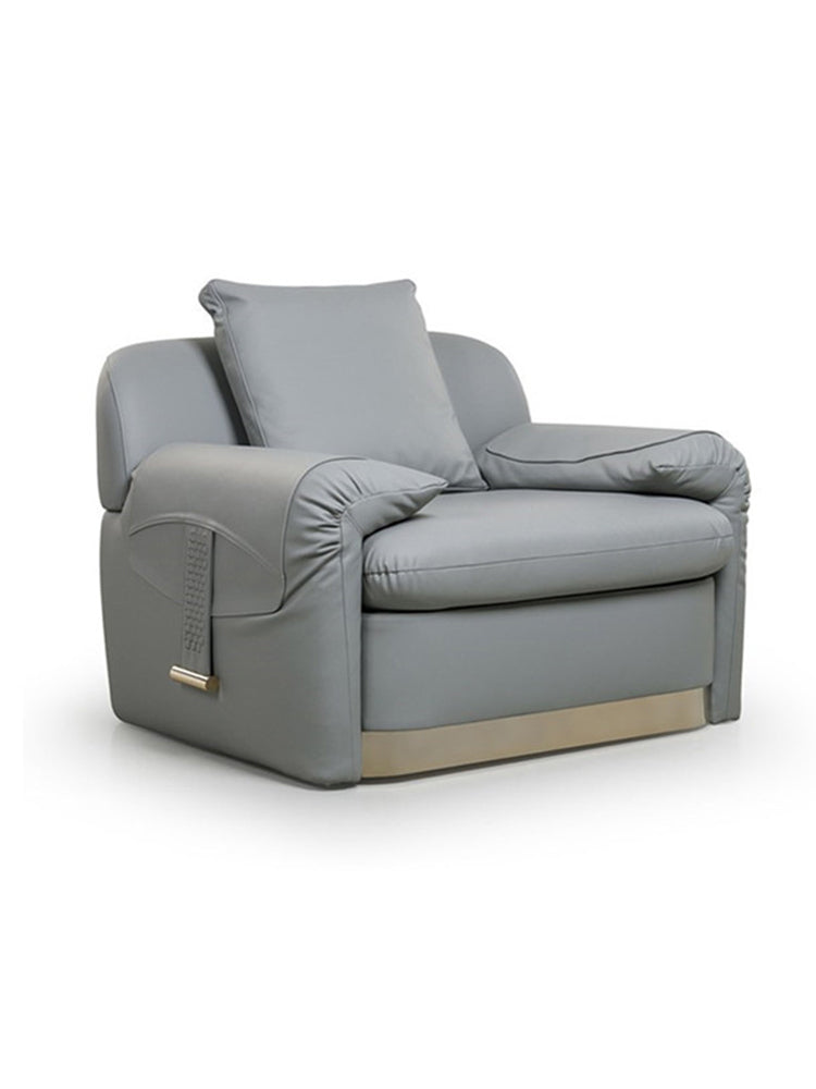 description | The armchair of Eclipse collection is built on sinuous and clean lines. The armrests, slightly folded inwards are a distinctive element, creating a rounded motif giving balance to the whole structure. The seat is extremely comfortable given by cushions covered in leather or fabric. Light gold metal details. |