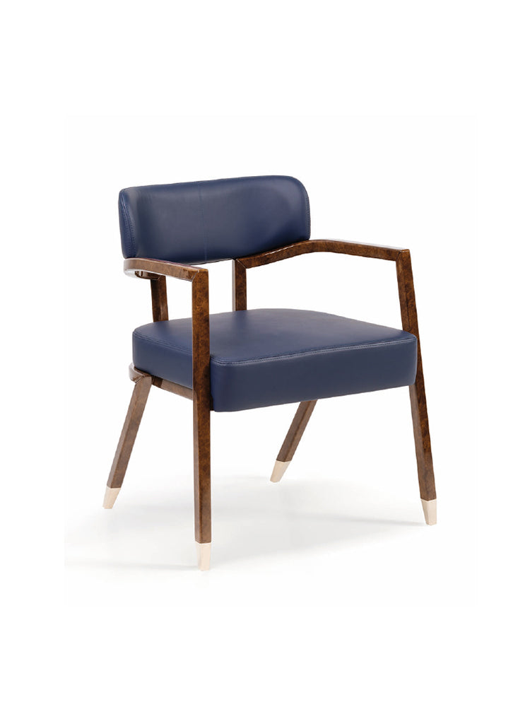description | The chair from Madison collection stands out for its original shape, the sophisticated design invites to enjoy the comfort of the seat. A game of full and empty given by the alternating of the glossy lacquered solid wood and the soft padding, all supported by delicate light gold metal feet. |