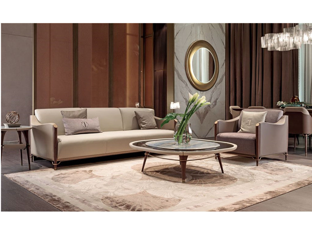 description | The armchair of Melting Light collection is made up of extremely contemporary lines with a cosmopolitan taste. The external structure is covered in leather, the comfortable seat and back cushions are available with fabric or leather upholstery. The armrests protrude outwards for greater comfort. Details in brushed gold metal. Melting Light armchair is available in different finishes as per sample book. |