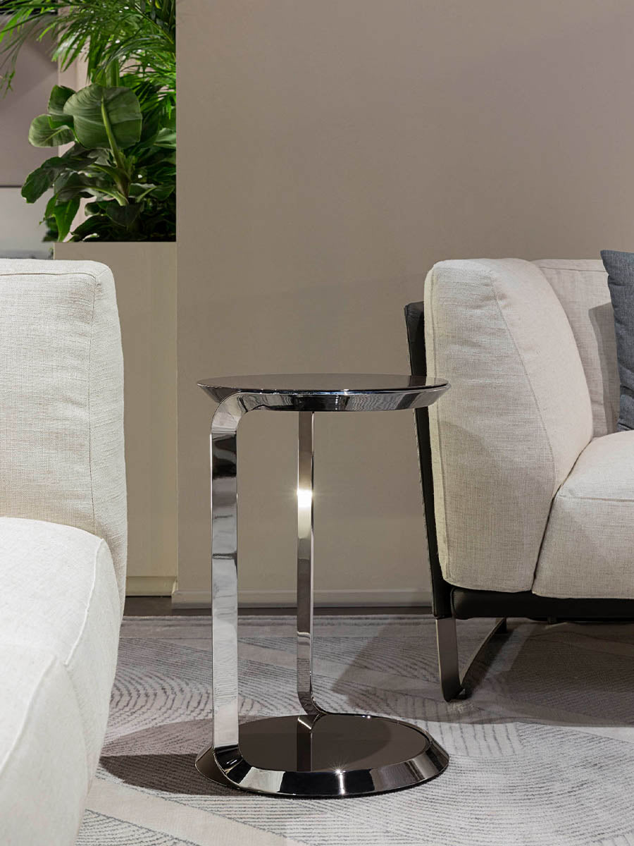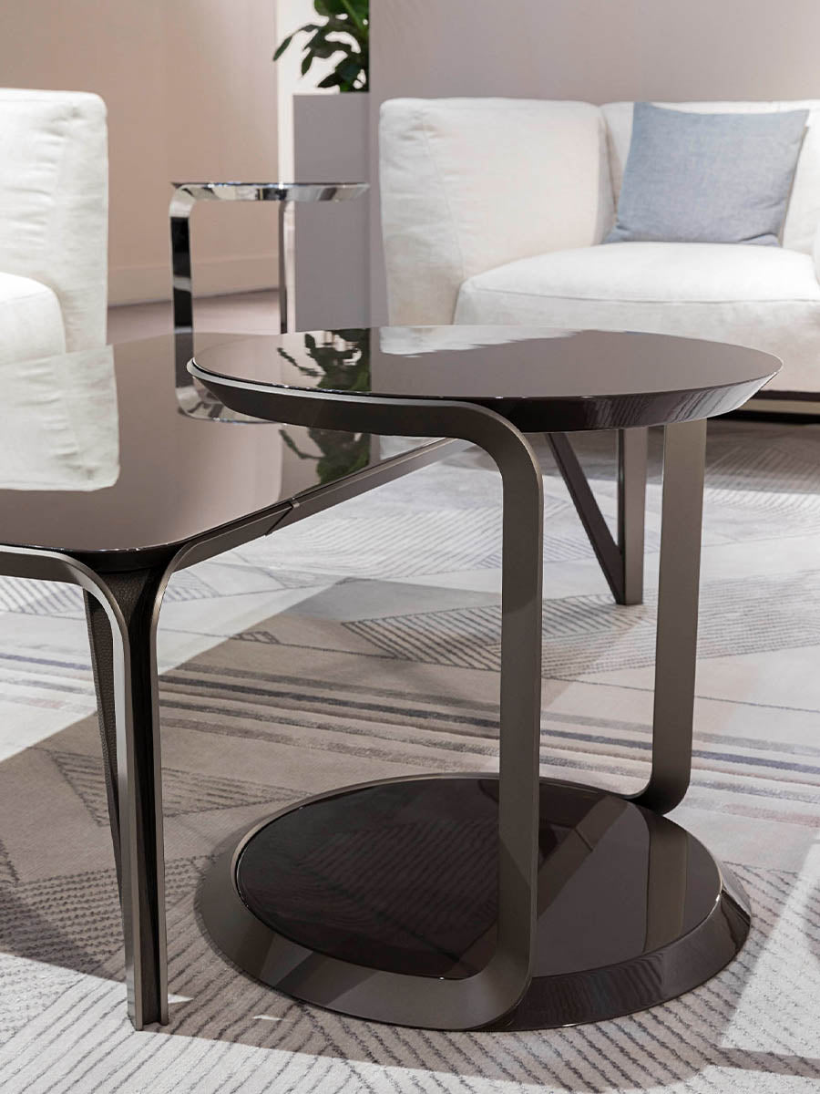 description | The side tables from Milano collection express the concept of elegance and lightness, the support surfaces in glossy lacquered wood are delicate and functional and they are proposed in two heights. The curved metal structures in brushed nickel. |