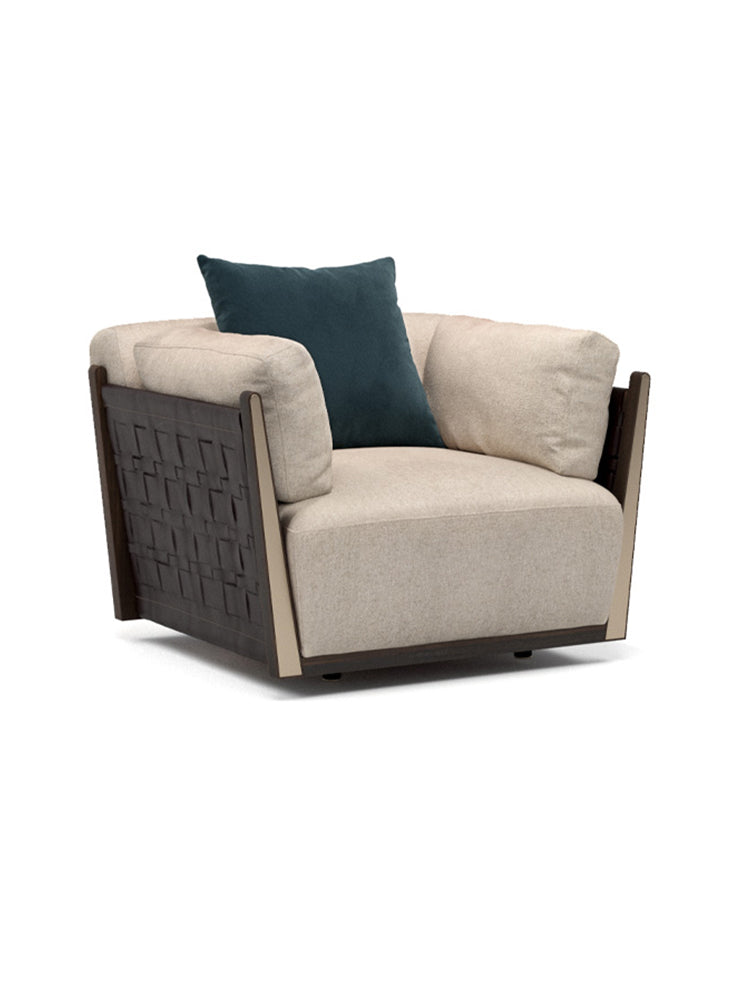 description | The soul of the Net armchair can be found in the balance of contrasts between the highly contemporary structure and the exclusive richness of the woven leather. The armchair has a Eucalyptus base and is available with leather or fabric upholstery. |