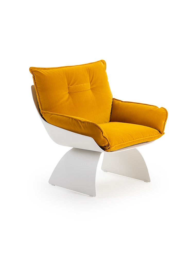 description | In a space that can be considered a business card reserved for guests who need to feel at ease, a solution of continuity is represented by the Silhouette armchair. An upside-down “U” suggests a feeling of lightness, emphasized by the soft and enveloping lines of the fabric or leather cushions. |