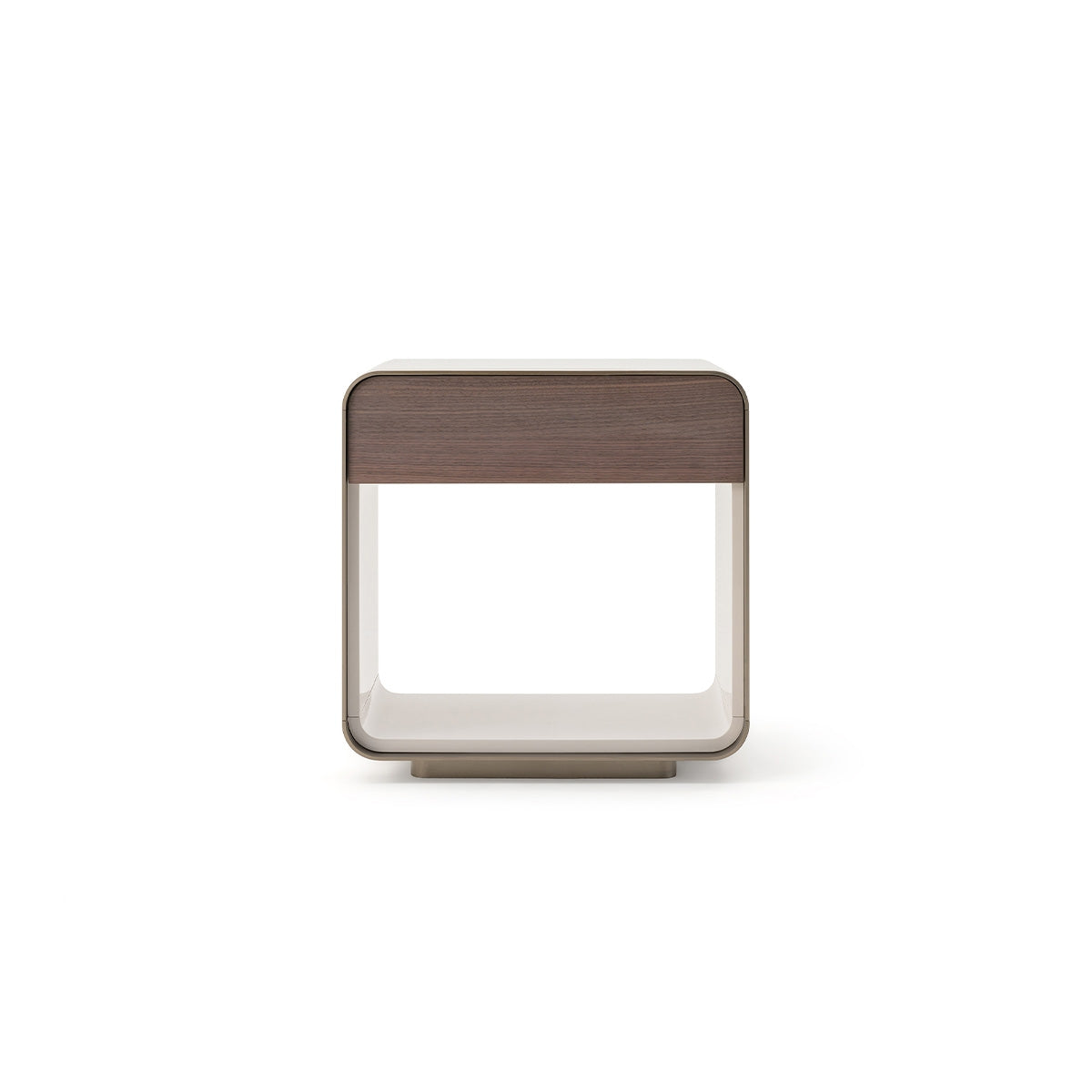 description | The bedside tables of the Soul collection rest directly on the ground and, thanks to the open compartment and the wooden drawer, have been designed to make the most of all surfaces. The drawer front can be made of walnut or marble. |