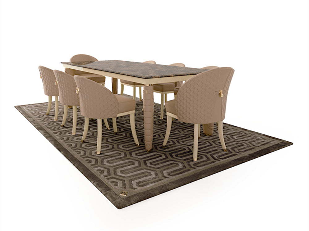 description | Vogue chair has glossy lacquered wooden structure with backrest and seat covered in leather. It can be customized by choosing the version with high or low backrest hexagonal embroidery to apply on the back. On the back a lock with buckle highlight the glamour soul of this chair. |