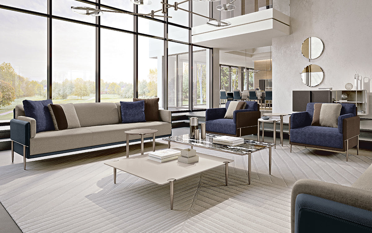 description | The coffee tables of the Vision collection express a sense of lightness and suspension. The thin wooden feet, with marble applications, support the structure on which a transparent or bronzed glass top rests. The tables are made in different sizes and available in different finishes as per sample card. |