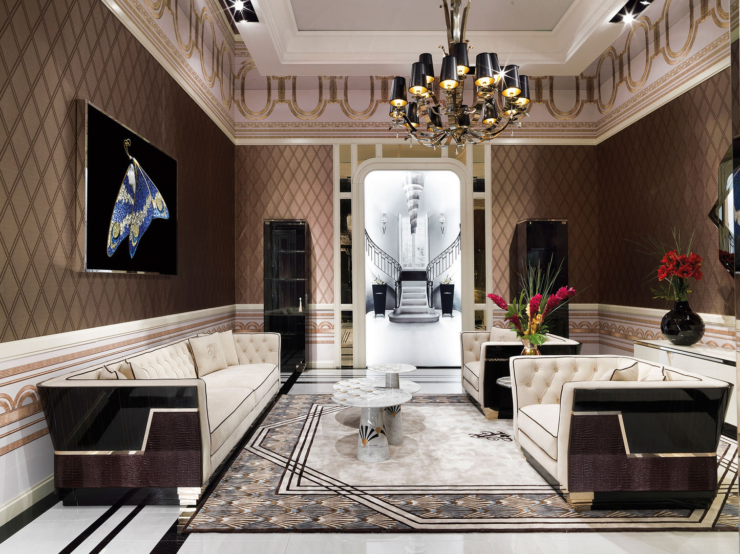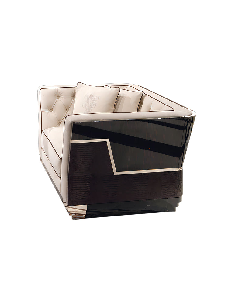 description | External structure in plywood poplar curved shaped, partially veneered (briar - ebony - plane tree) or lacquered (RAL colours), in combination with external cover in leather or fabric with polished stainless steel inserts. Plywood polished lacquered base (RAL colours) with polished stainless steel angles, sprung system with elastic bands. Seat pillows in polyurethane with double density, Memory Foam® and goose feathers, backrest and internal sides with capitonné finishing. Leather or fabric upholstery, angles and profiles also available lacquered gold, bronze or black nickel. |