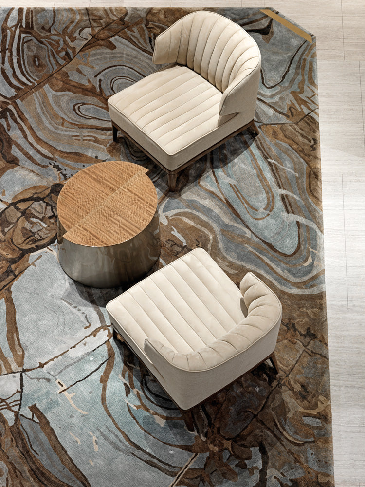 description | Structure in solid wood and shaped poplar plywood, padding in polyurethane foam with different densities and elastic straps springing system. Seat and backrest padded in Memory Foam® internally upholstered in leather or fabric, quilted portions padded one-by-one. External upholstery in leather or fabric, leather pipings. Base and feet in beech wood with corner profiles in satinized stainless steel. Base and feet are available in the veneer finishings selection; metal parts available in the satinized metal finishing selection. |