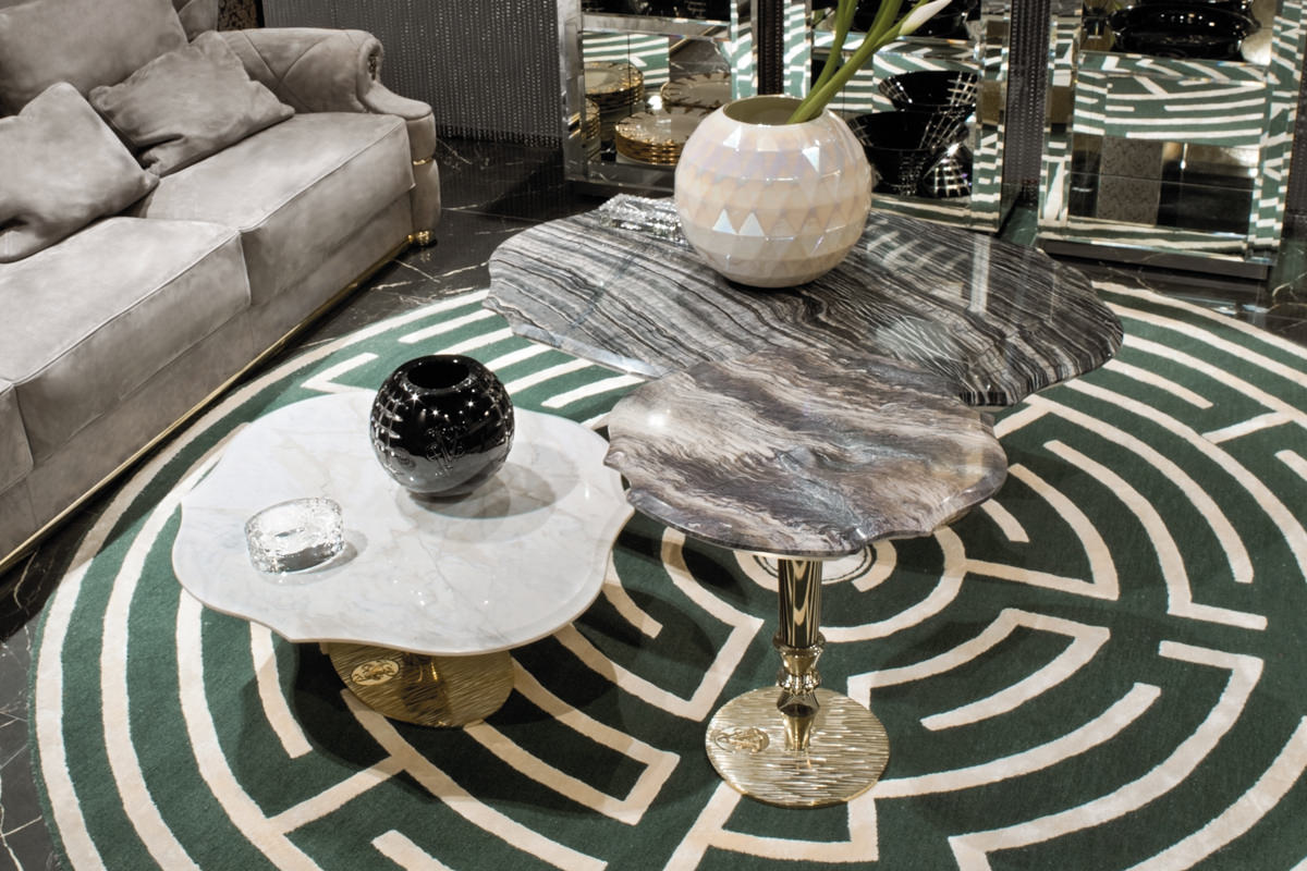 description | Base in fusion of aluminium with Visionnaire logo in brass, legs in turned aluminium and chromed steel moulded, undertop in lacquered shiny Plywood, top in marble. Metal parts available in any colour included in the metal finish selection. |