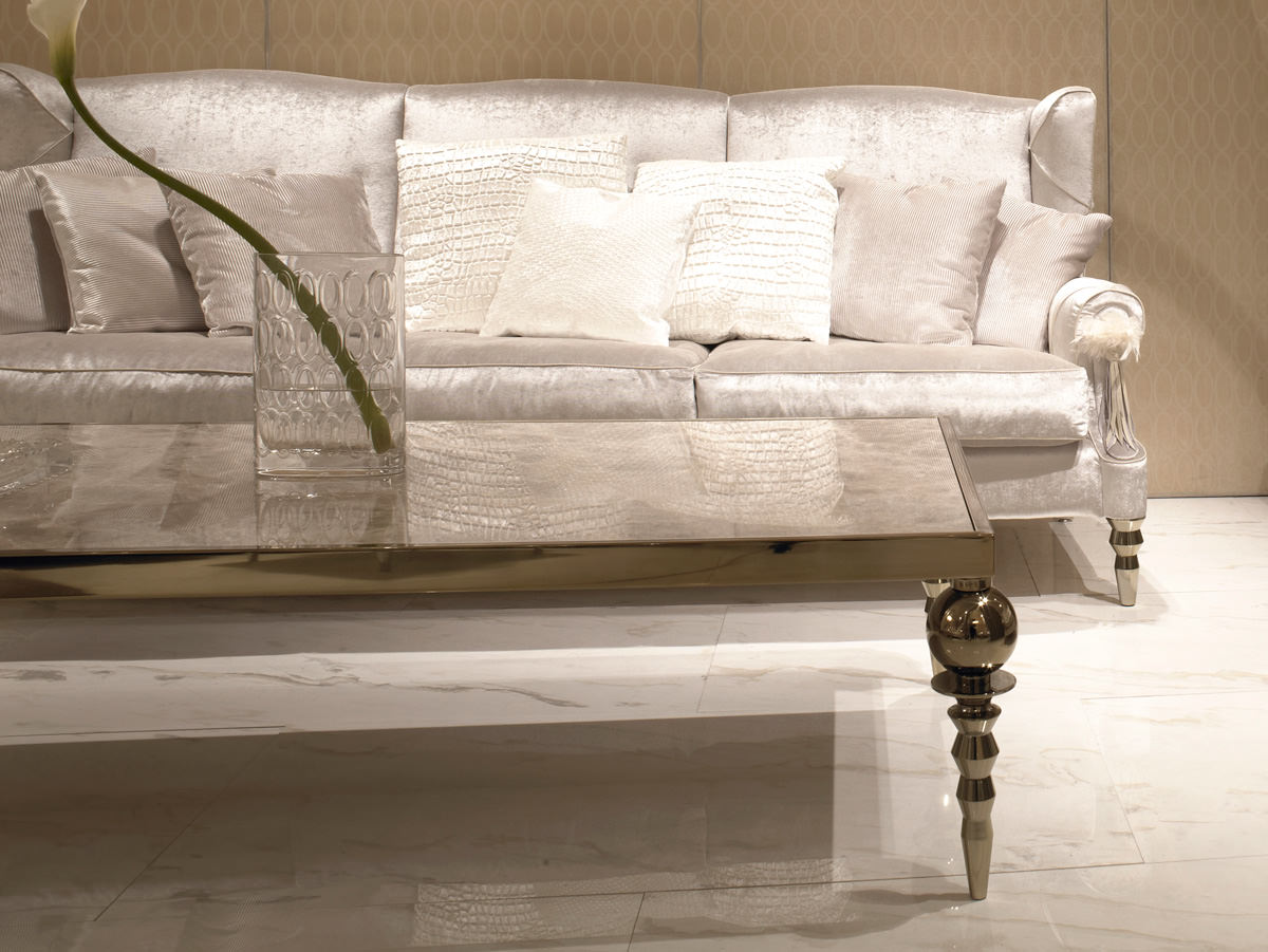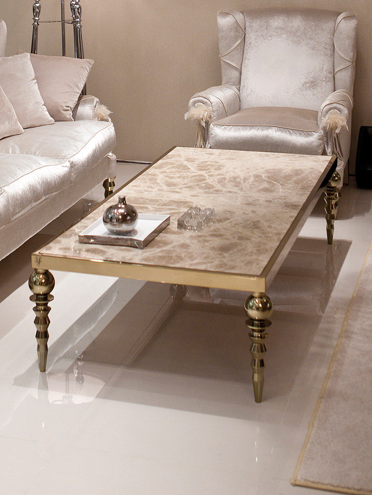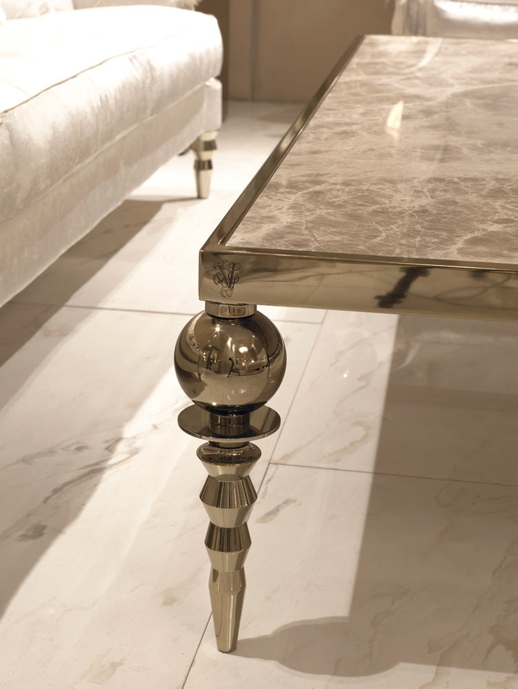 description | Frame in shiny stainless steel tube. Legs in steel and brass with aluminium turnings. Built-in top in marble. Metal details can be finished with any lacquer of the polished metal lacquer finish selection. |