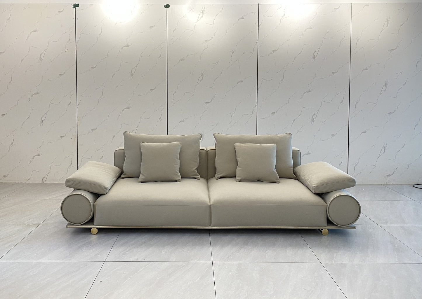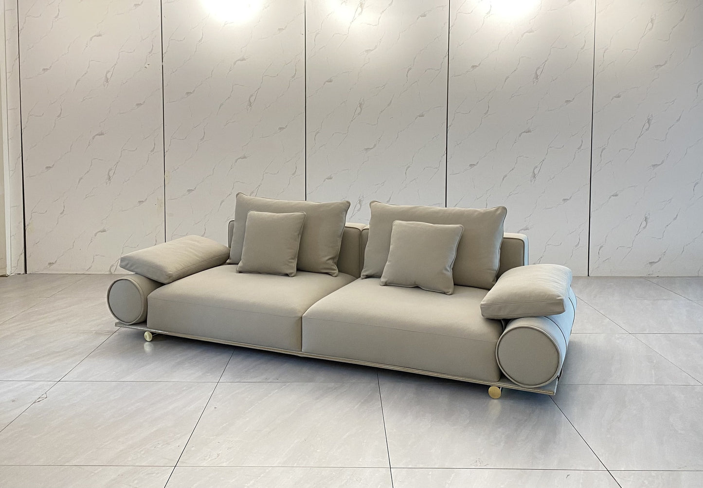 description | Sofa upholstered in leather or fabric, frame in wood with elestic spring belts. Back and armrests in polyether and padded in feather. Base in plywood upholstered in fabric (Gand, Faber or Vermeer) with canneté quilted decoration. Cylidrical metal feet with Visionnaire logo in relief. Armrests consists of cylindrical elements upholstered and decorated with leather belts and metal buckles. Seat cushions padded in polyurethane foam with different densities, Memory Foam® and feather sewed to the external upholstery; loose cushions padded in feather. Modular version includes central, corner and lateral elements. Metal parts can be lacquered with chrome, gold, champagne, Siena, gunmetal grey or black nickel finish. |