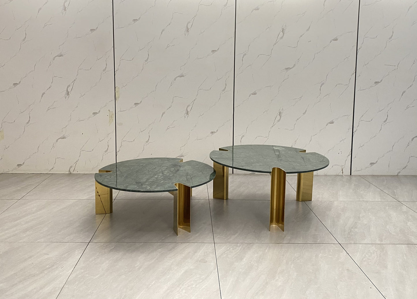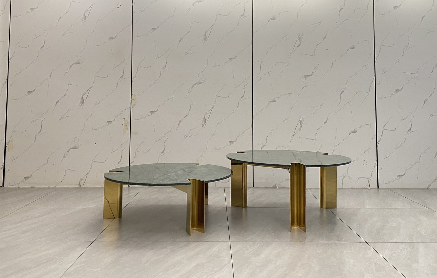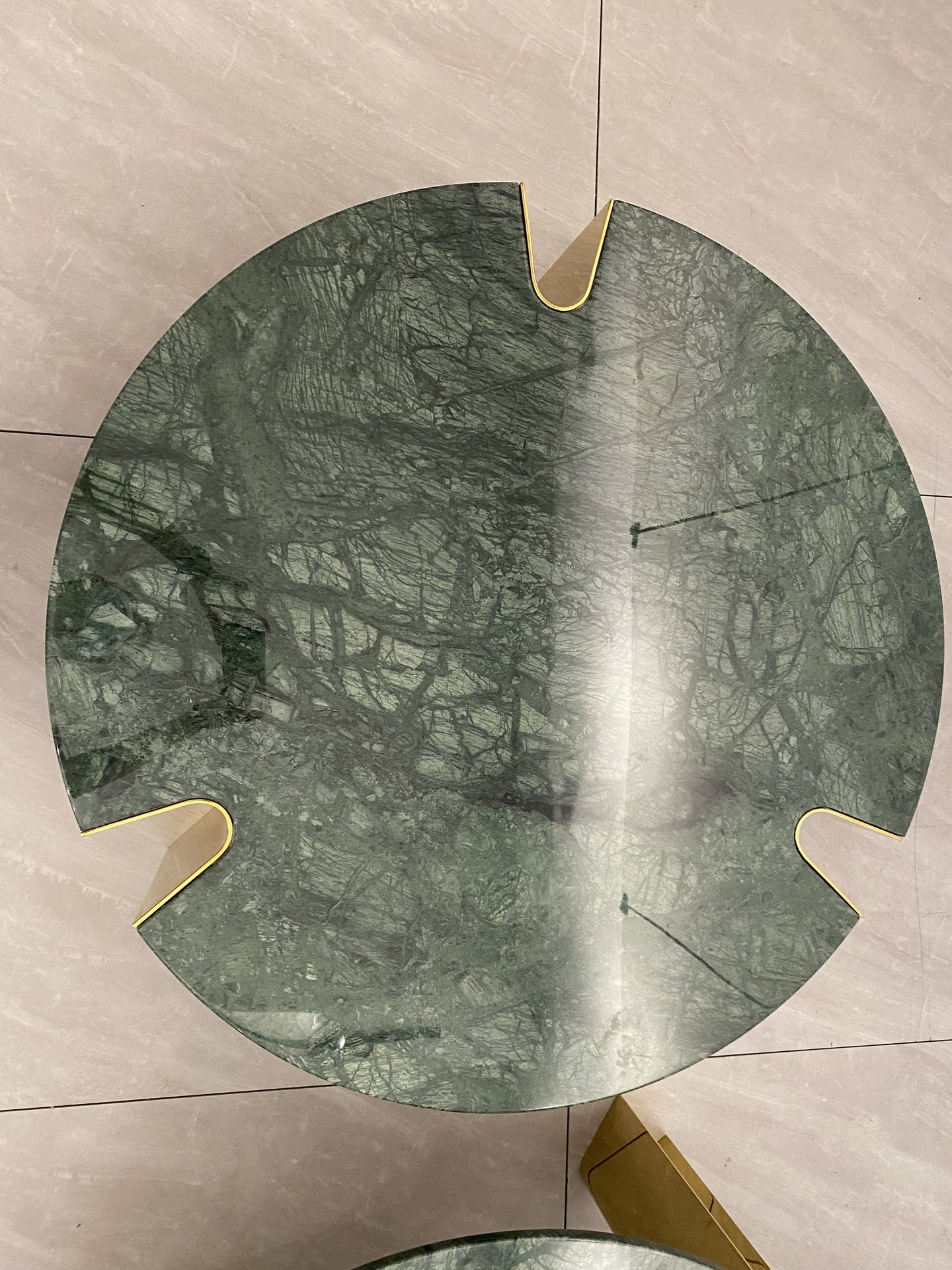 description | Structure in metal and marble, three legs in curved steel with polish internal surface and satin external surface. Top in marble partially recessed in the three legs. When top is in Black&Gold marble, it can be finished with Galuchat micro-relief engraving, with manual processing by Diego Crestani. |