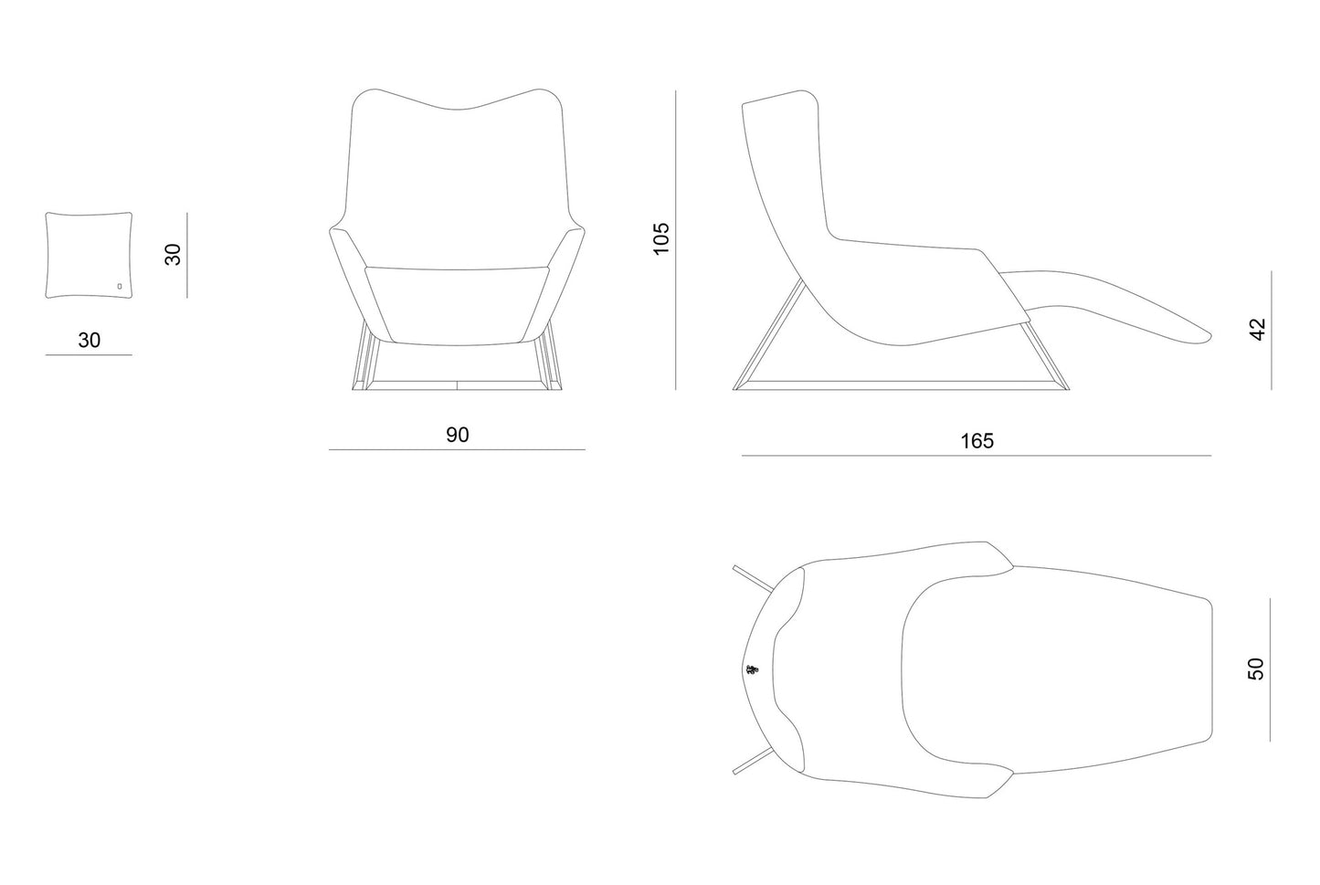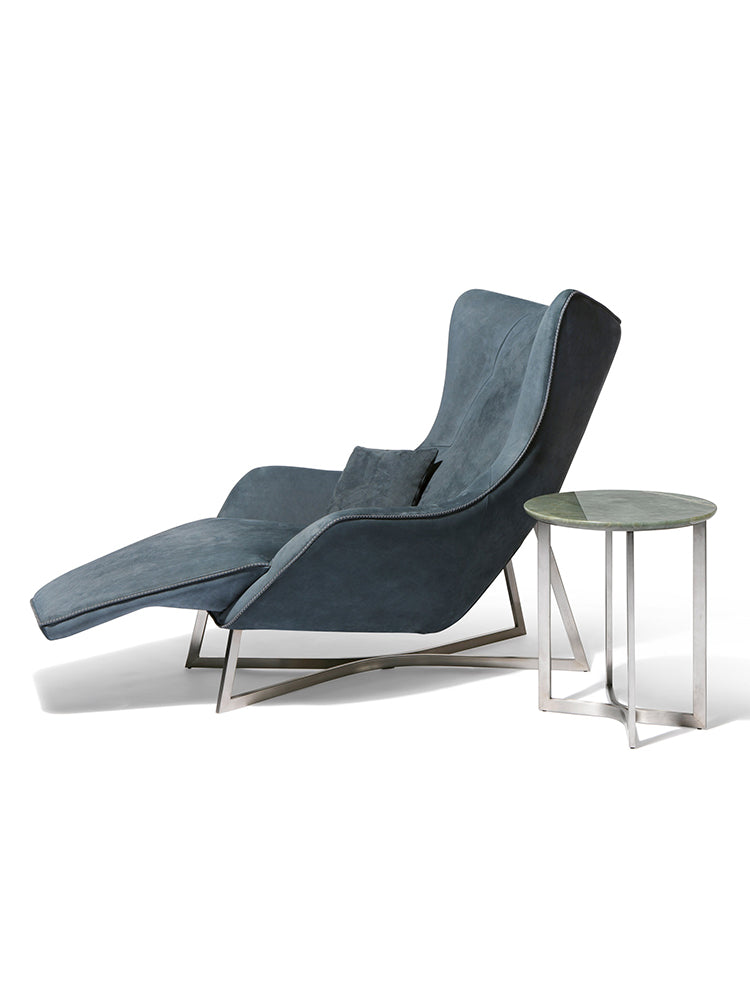 description | Chaise-longue with structure in birch plywood, padded in polyurethane foam and acrylic fiber. Upholstery in leather or fabric, supporting frame in stainless steel - available in any of the lacquer included in the satinized metal finish selection. |