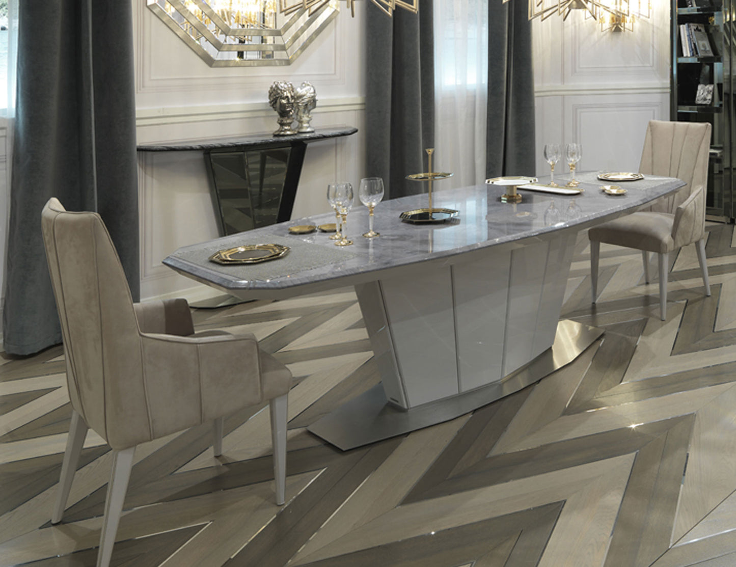 description | Back frame in shaped plywood joined to the seat frame, legs in beech solid wood. Seat sprung system with twisted elastic belts. Upholstery in leather or fabric. Seat padding in polyurethane foam. Internal part of the back in polyurethane foam and acrylic fibres, parts padded individually. External part equipped with a 10 mm layer of polyurethane. Legs in polished lacquered beech wood with a vertical insert in 5 mm polished metal, available with chrome or gold finishing. Available also in high version with armrests. Avail-able also with base in polished stainless steel with 5 laser-finished spokes, 8 mm in width, with aluminium turnings and chrome wheels, available in the metal finishing selection. |