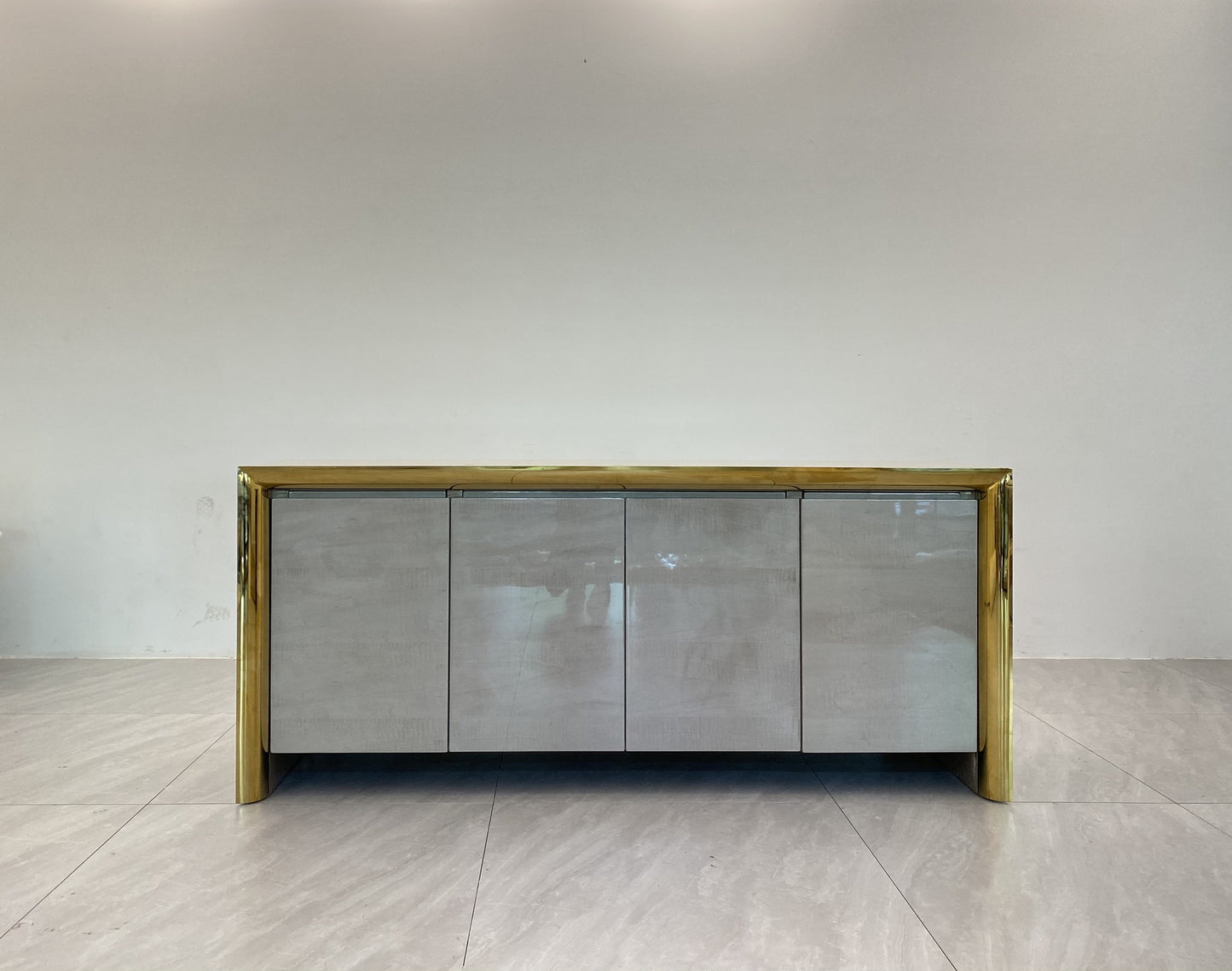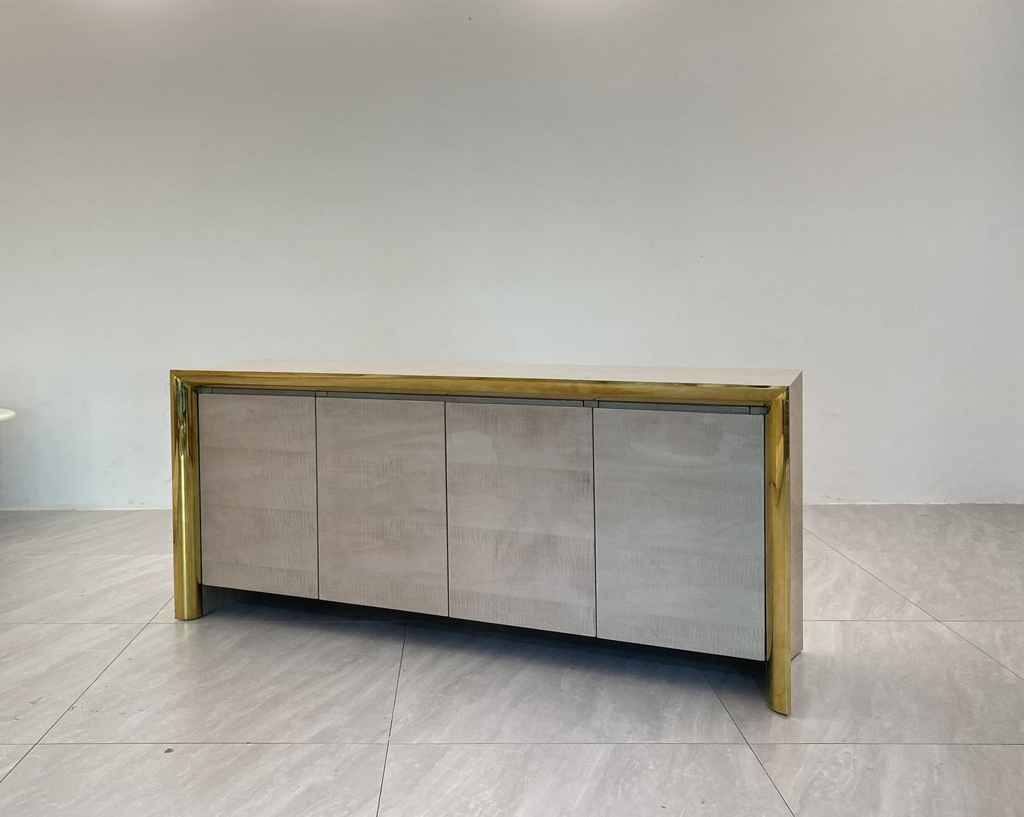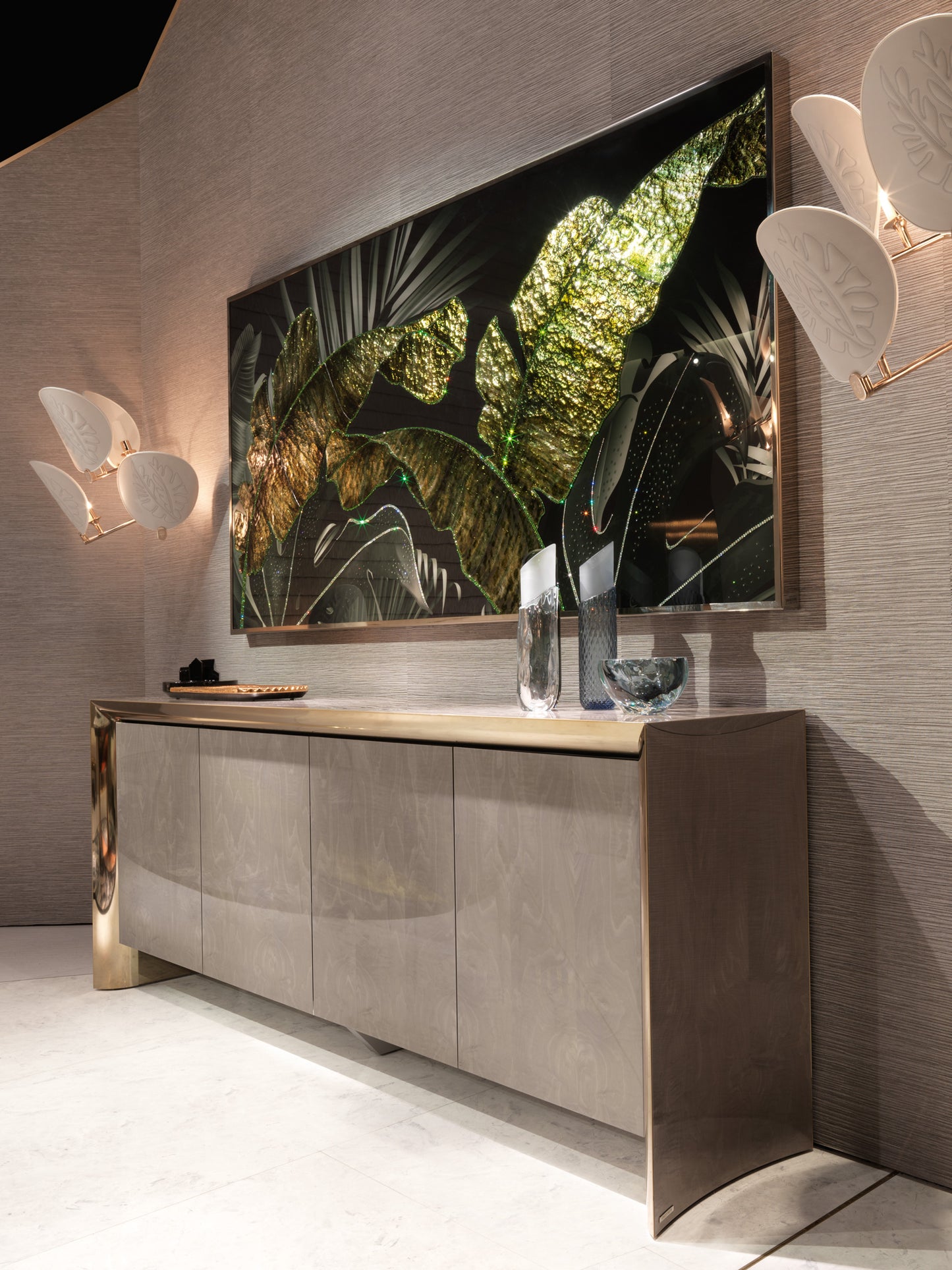 description | High unit with four doors and three drawers, structure in wood with concave side in veneered wood finished with 100 gloss polish applied by hand or with shiny lacquer. Sides and top internal frame covered in curved stainless steel with shiny finish. Internally finished with matt RAL/NCS lacquer. Metal parts can be finished with any lacquer of the metal lacquer finish selection. Wooden parts can be finished with any wood veneer of the veneer finish selection or with RAL/NCS lacquer. |