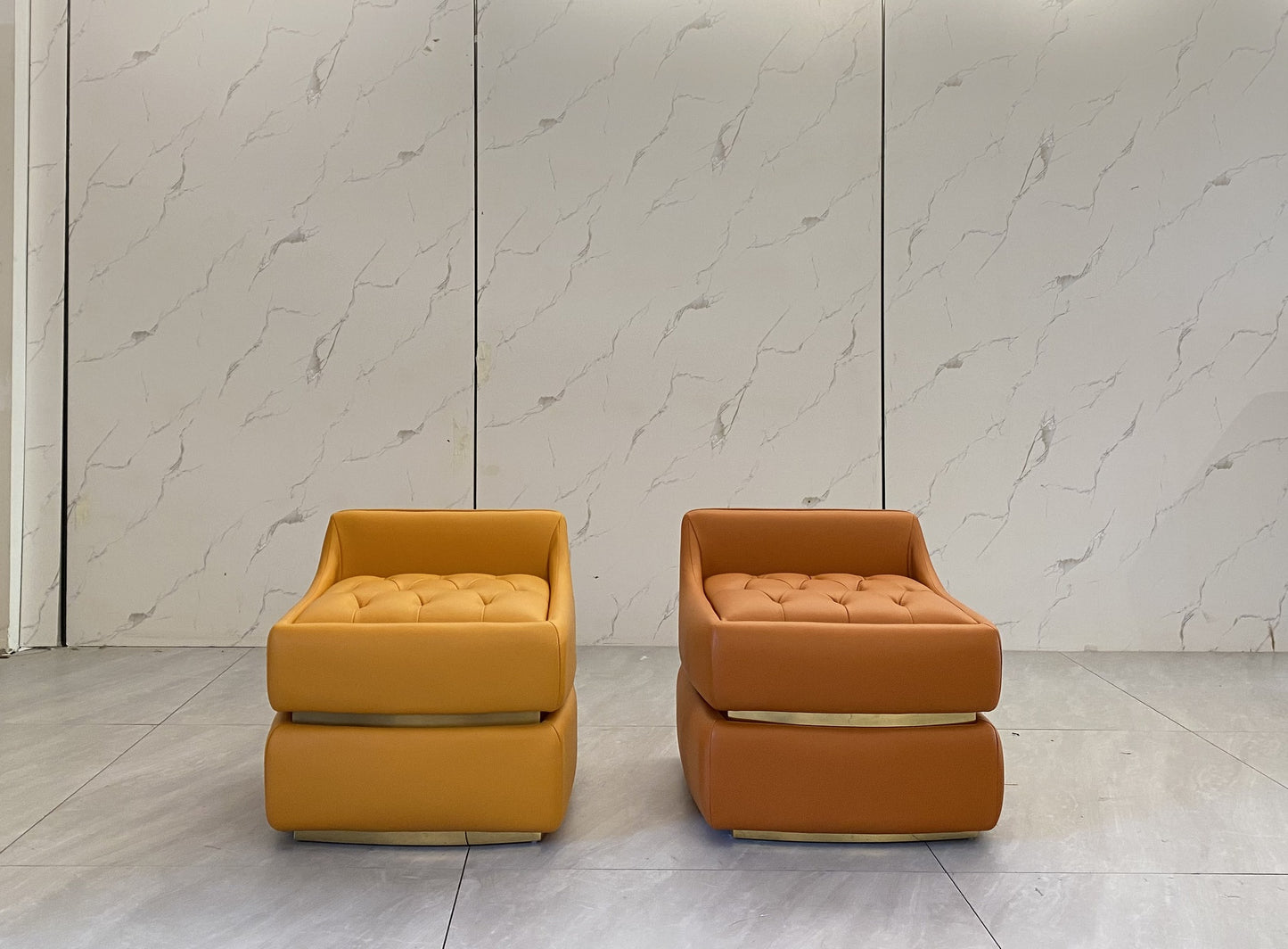 description | Soft square Ottoman features Italian factory VISIONNAIRE in the collection Salone del Mobile Milano. Pouf upholstered in leather and decorated in art Deco style. The base of the Ottoman can be made of metal in chrome, bronze or Golden finish. Seat pouf embroidered decorative stitch Capito. Available to order in other upholstery options of fabric and leather. |