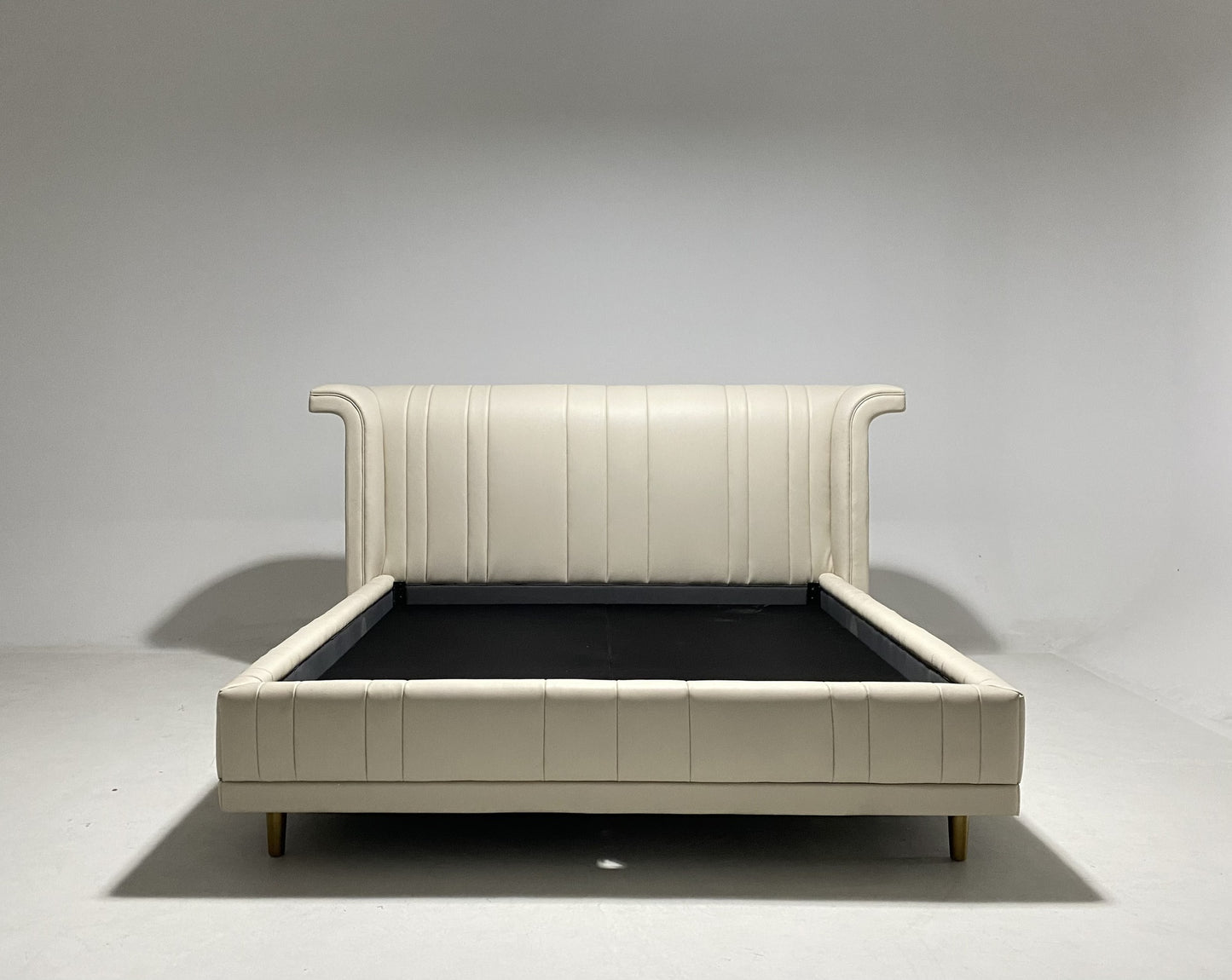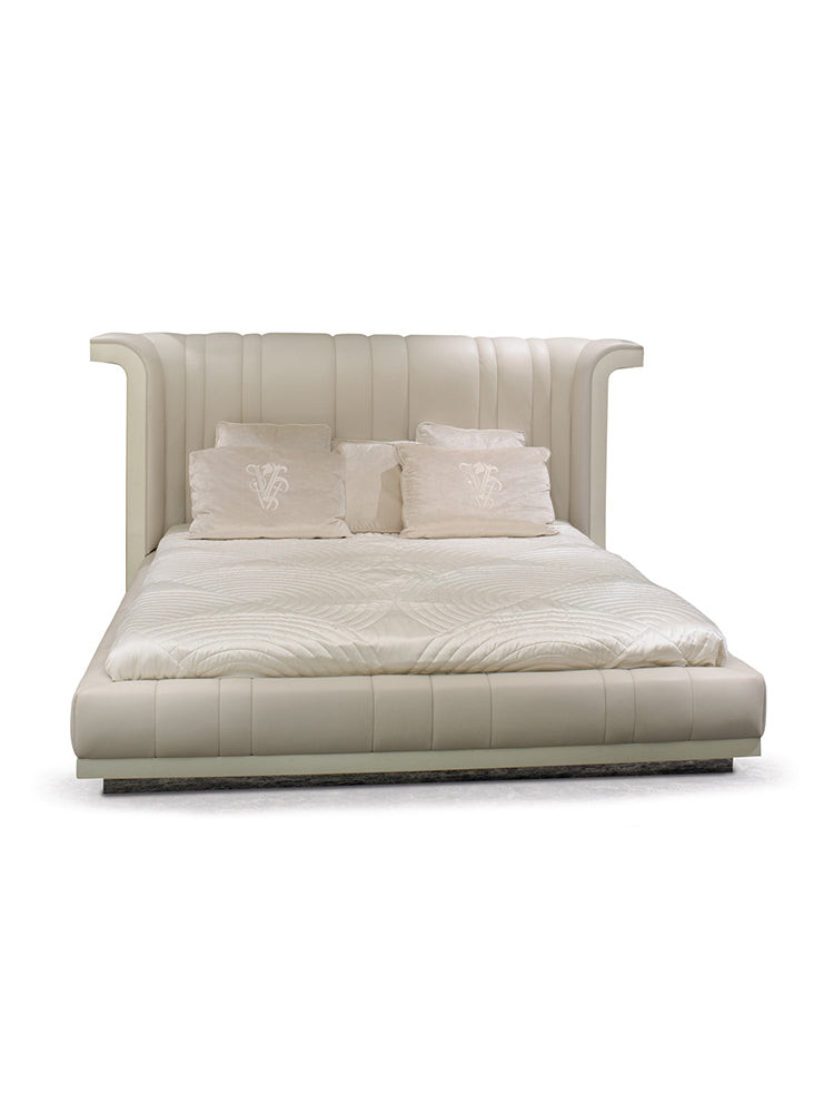 description | Headboard: structure in poplar honeycomb plywood mm 25 with plywood fillers mm 4. Large band border in polished lacquered beech solid wood. Padding in polyurethane D. 40 kg/m3 with cover in layer D. 30 kg/m3. Wooden base covered by steel laminate. Upholstery made with vertical quilting with support in Memory Foam® polyurethane layer mm 20. Bedframe: in poplar multiply wood mm 25 honey-combed with plywood mm 4 and padding in polyurethane D. 40 kg/m3. Upholstery made with vertical quilting with support in Memory Foam® polyurethane layer mm 20. Base in polished lacquered Plywood on wooden plinth covered with polished stainless steel laminate. Four angled corner supports and a central crossbar, in painted steel, make up the hardware included for assembly of the bed perimeter and relative fixing to the headboard for support, adjustable in height for the slats which determine the bed level. Shown with bed linings, pillows and bedcover Porfirio. |