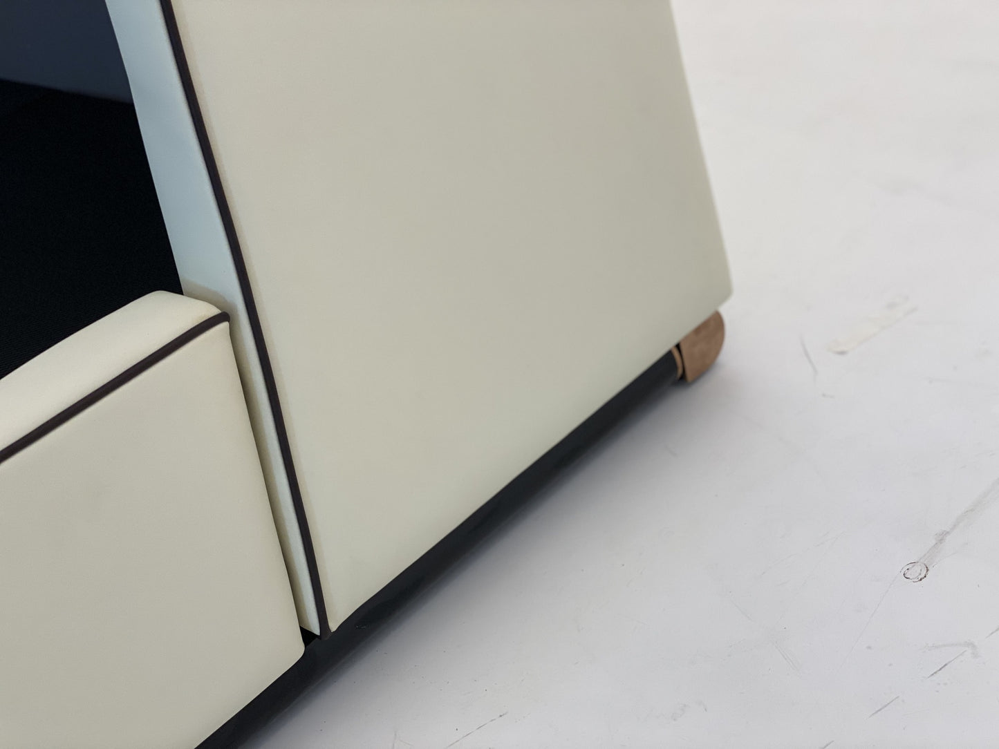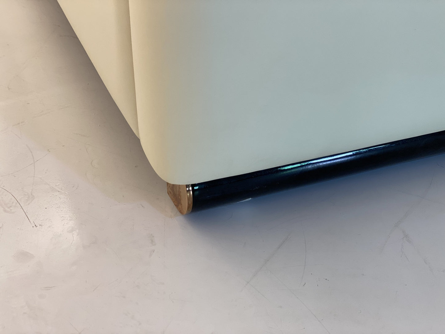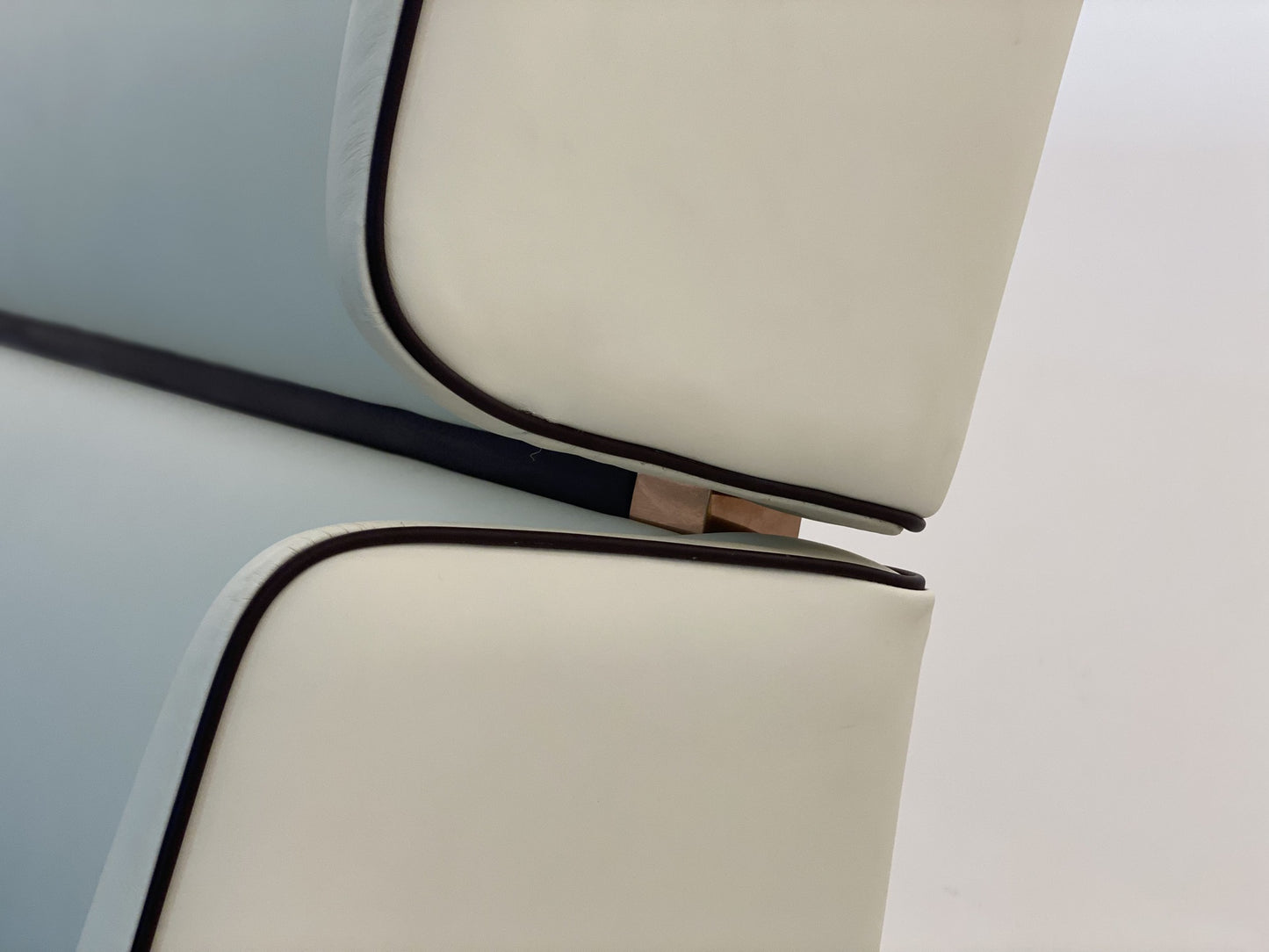description | Upholstered bed in leather or fabric with high head divided into two horizontal sections with different inclination. The external part can be covered in contrast with the inner part, divided by a leather thread. Padded sommier with inwardly inclined bed frame; polished lacquered wooden base with decorative satin brass corners. Internal structure in solid and multilayer wood, solid wood slatted base. Height adjustable slats/mattress supports. Metal parts available in the metal finishing selection. Available in RÊVERIE RADICA version with burr walnut outer shell in 100 gloss finish. Shown with bed linings, pillows and bedcover: Chambre Cinq. |