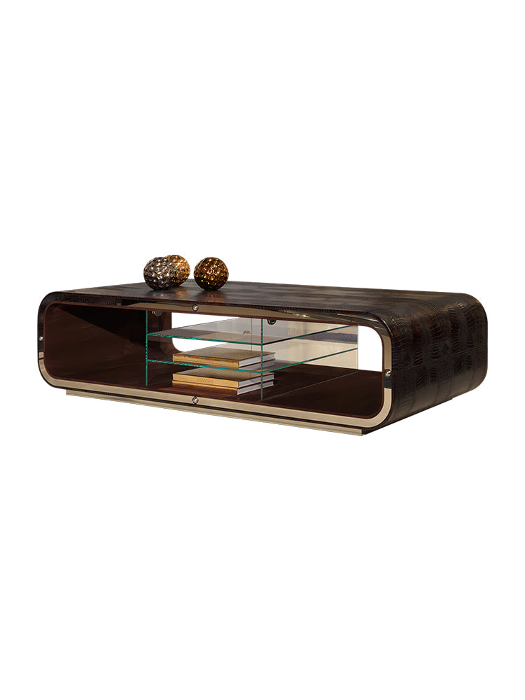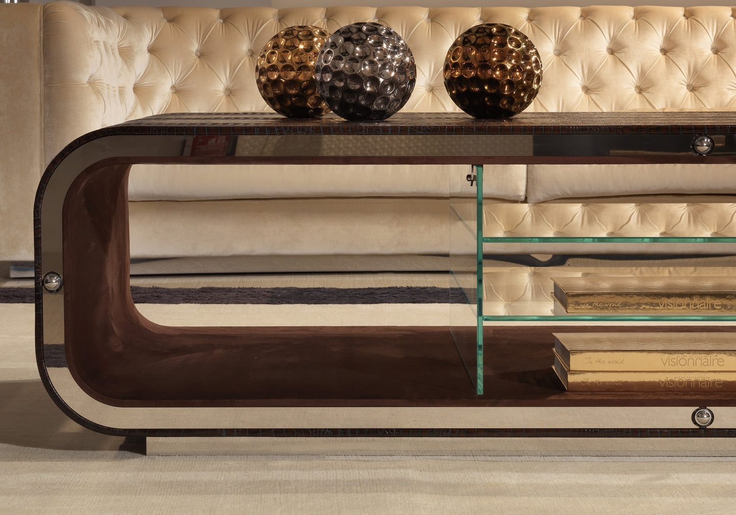 description | Visionnaire Rhonin coffee table is made of leather. The main structure is made of plywood, stainless steel inlay and glass. This luxurious modern collection combines uniqueness and modern style. |