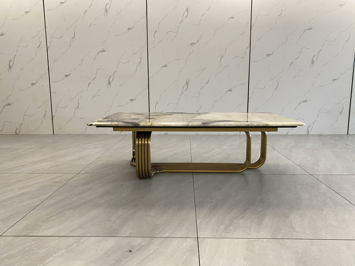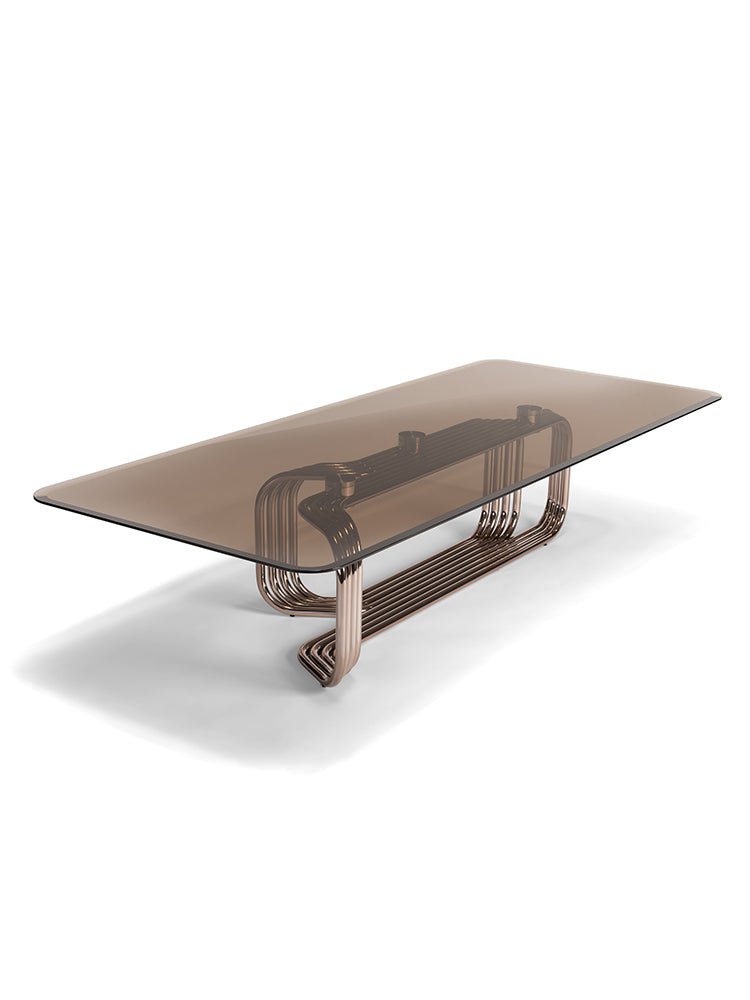 description | Low table with structure in chromed metal tubes curved and welded together. Version with glass top: sheet of smoked glass, 12 mm in thickness, with bevelled edge; aluminium and steel supports for base bonded to top using UV light. Version with marble top: marble slab, 20 mm in thickness, with bevelled edge and equipped with liner jig bushes. Metal parts can be finished with any lacquer of the metal lacquer finish selection. Glass top available with smoked, bronze or extra clear finish. |
