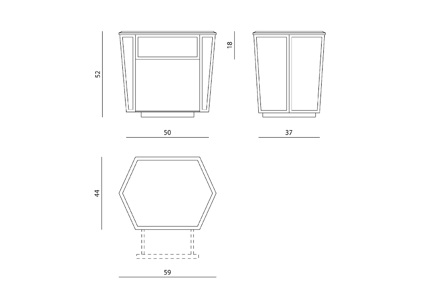 description | Bedside table coated in bronze or smoked mirror with marble top, equipped with drawer and open lower shelf; multi-faceted structure in Plywood coated in mirror both internally and externally; drawer runners equipped with damping system; internal part of the drawer in matt lacquered plywood. Multi-faceted base in black lacquered wood. |