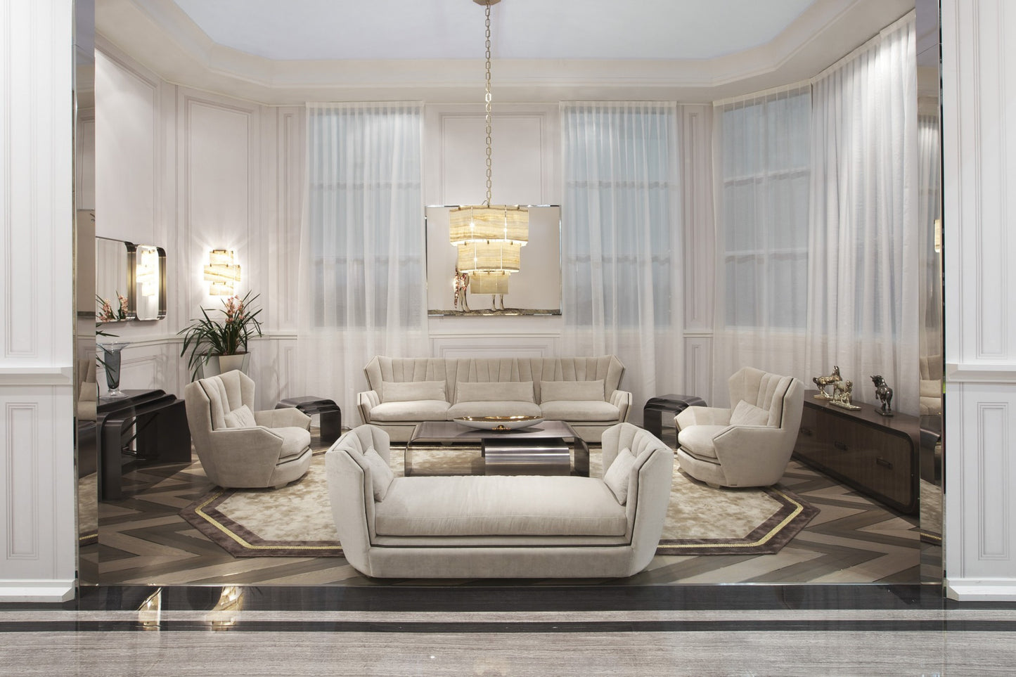 description | The coffee table is made of stainless steel. This luxurious modern collection combines uniqueness and modern style. |