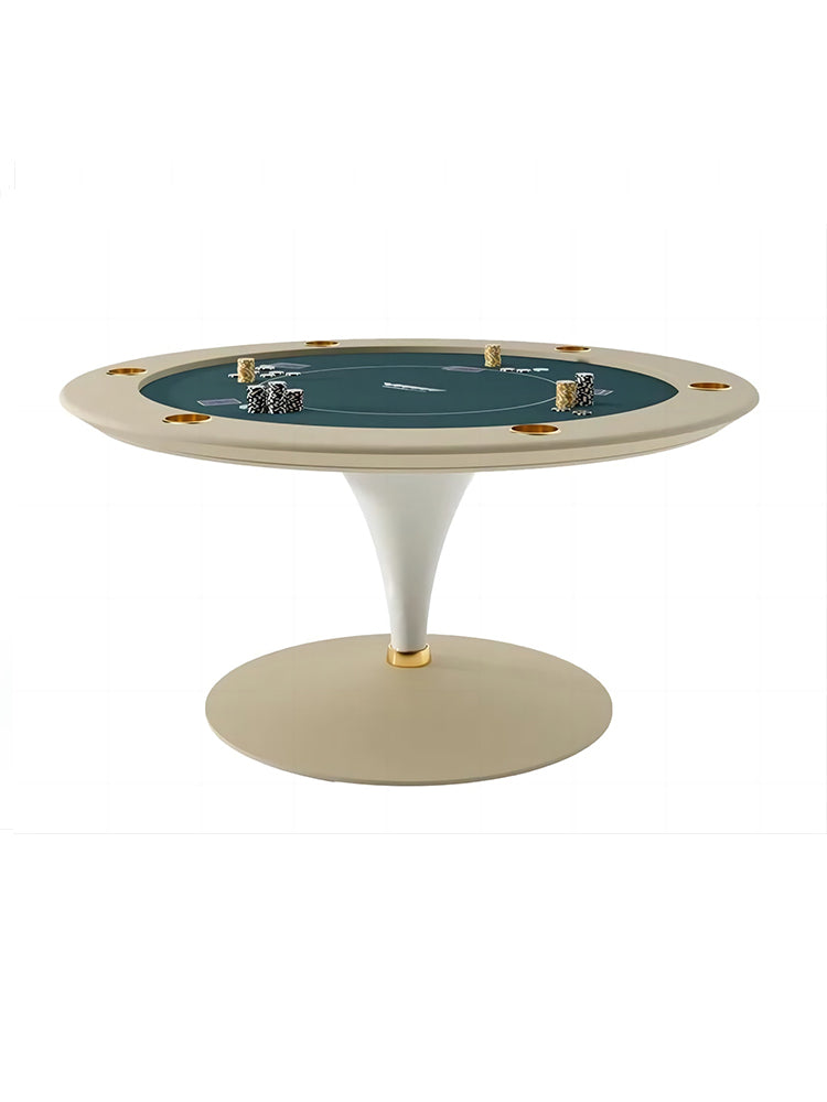 description | ASSO, is the new oval poker table by Vismara. The simplicity of its shape is transformed into extreme luxury thanks to a deep study of the details. The conical base is covered with leather, as are the cup holders built into the top of the table. The playing surface is covered in slightly padded cloth, customizable in all Pantone colors. |