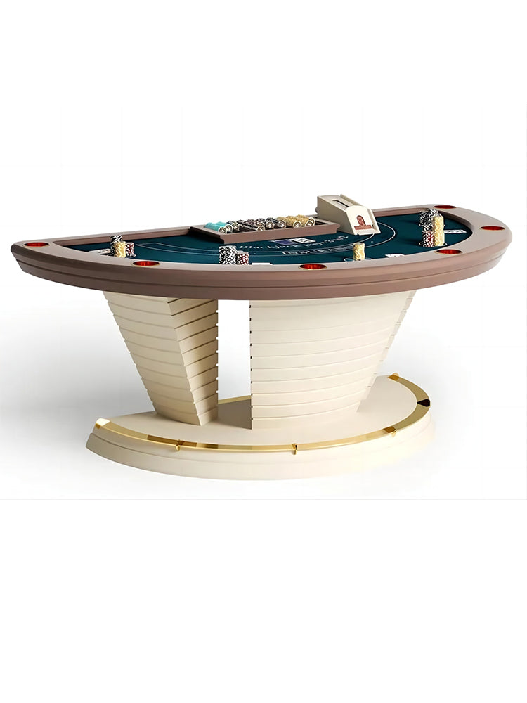 description | Vismara designed a table equal to the fascinating Blackjack game, through an original style and a captivating aesthetic. The entire wooden structure is adorned with sophisticated stainless steel inserts, and the cloth is customizable both in color and in layout. All these elements are harmoniously combined in order to create a furniture endowed with great beauty and flawless functionality. In addition Vismara provides a 500 chips set, a chips rack and a professional sabot for the dealer. |