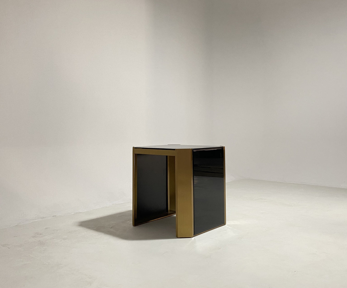 description | Low table in steel and mirror, frame in satinized stainless steel with 4 slanted legs with logo engraved. UV-welded shaped top and sides in smoked 10 mm glass with faceted corners. The frame can be lacquered in any colour included in the metal finish selection. |